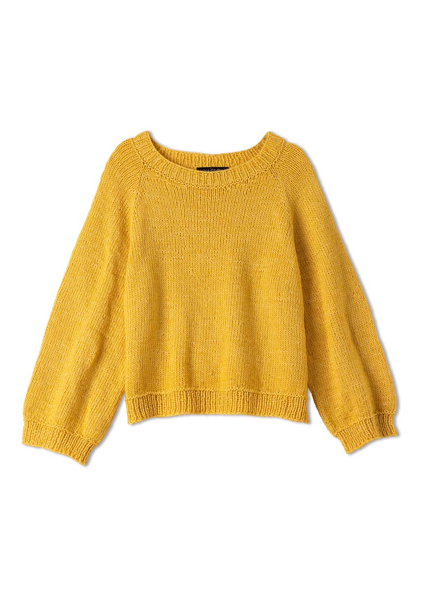 Garn: Lana Grossa «Summer Softness» (80 % (bio) bomull, 20 % ren ull (merino superfine), LL = ca. 130 m/50 g): ca. 350 (400) g gul (frg 11)