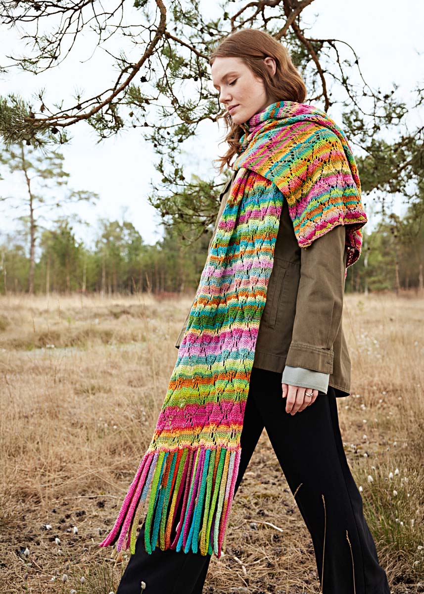 Lana Grossa Farfalla (94% ren ny ull (merino extrafine), 6% polyamid, LL 340 m/100 g), 400 g aprikos/oransje/pink/ rosa/pistasj/lys-/mint-/sjøgrønn/lys gul (frg 5) Pinner: Rundpinne nr. 7, to strømpepinner nr. 7