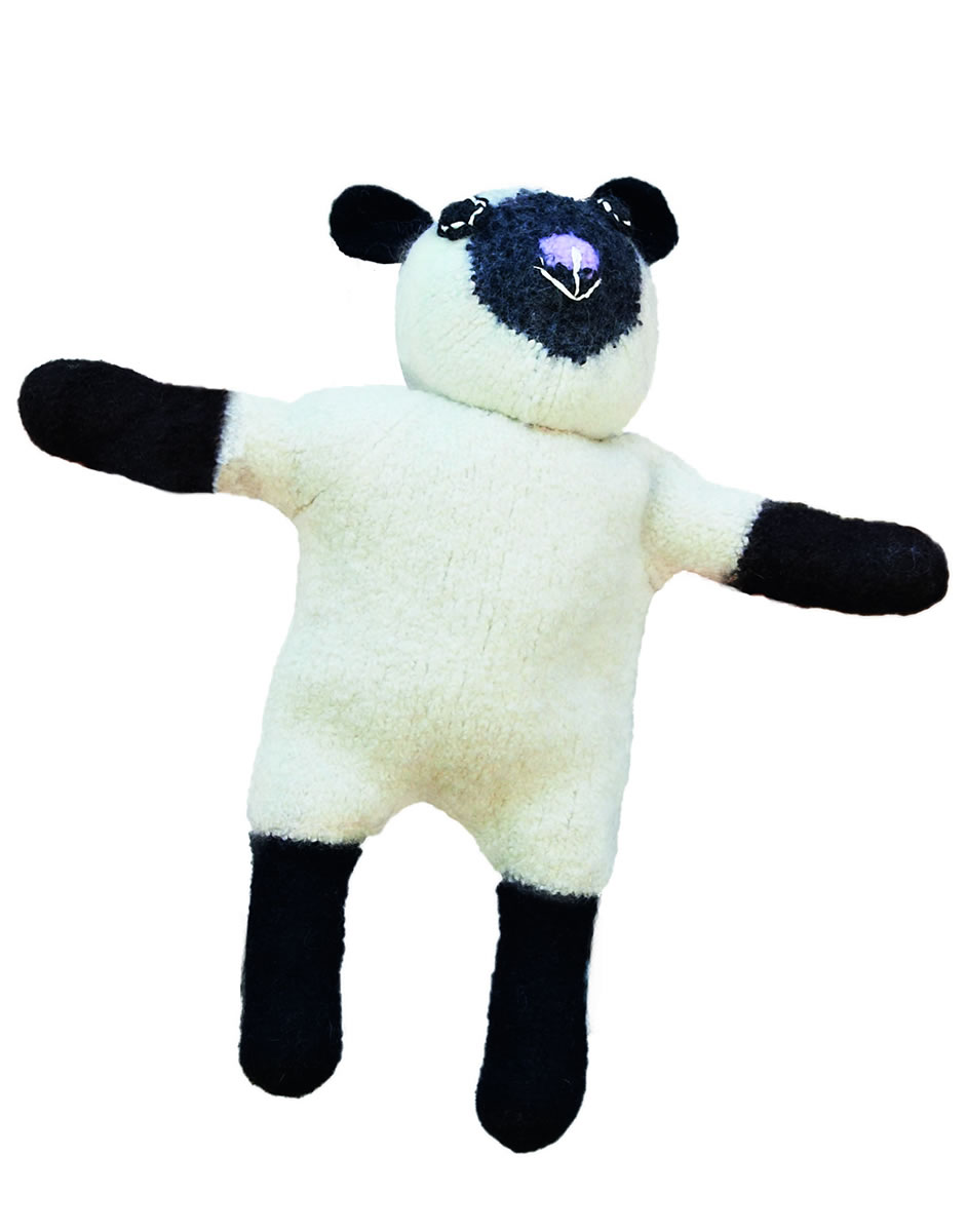 Grossa Qualität „Feltro“ (100 % Schurwolle, LL = 50 m/50 g), 600 g Rohweiß (Fb. 1), 150 g Schwarz (Fb. 6), 50 g Anthrazit (Fb. 25); 50 g Rosa (Fb. 17); Rest weißes Baumwollgarn; spitze Stopfnadel; Nadelspiel und Rundstricknadeln Nr. 8, 40 cm lang; Häkelnadel Nr. 8; ca. 500 g Füllwatte.