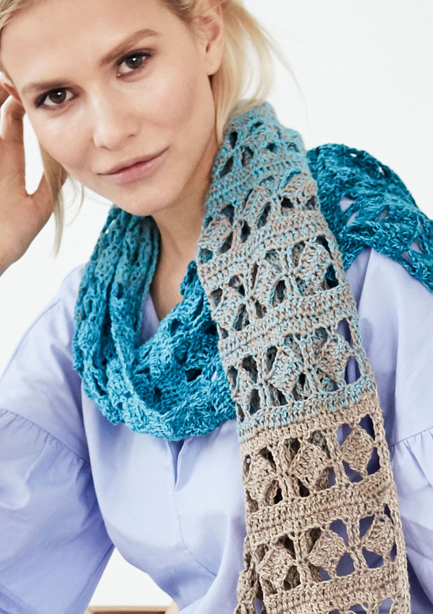 Lana Grossa Shades of Cotton, (100% Baumwolle, Lauflänge ca 800 m / 200 g), 200 g in Marine/Jeans/Türkis/Beige (Fb 110), Häkelnadel Nr 3,5.
