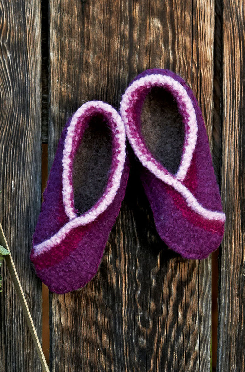 Lana Grossa Qualität „Feltro“ (100 % Schurwolle, LL = 50 m/50 g), 150 g Rotviolett (Fb. 22); 50 g (100 g) Zyklam (Fb. 62), 50 g Rosa (Fb. 17); Baumwollgarn in Rotviolett; Stricknadel Nr. 8; Häkelnadel Nr. 10, spitze Stopfnadel