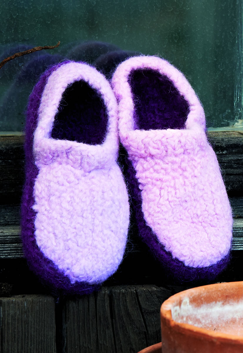Lana Grossa Qualität „Feltro“ (100 % Schurwolle, LL = 50 m/50 g), 100 g (150 g) Rotviolett (Fb. 22) oder Petrolblau (Fb. 40) und 50 g (100 g) Rosa (Fb. 17) oder Rotviolett (Fb. 22); Nadelspiel und 40 cm lange Rundstricknadel Nr. 8; Stopfnadel