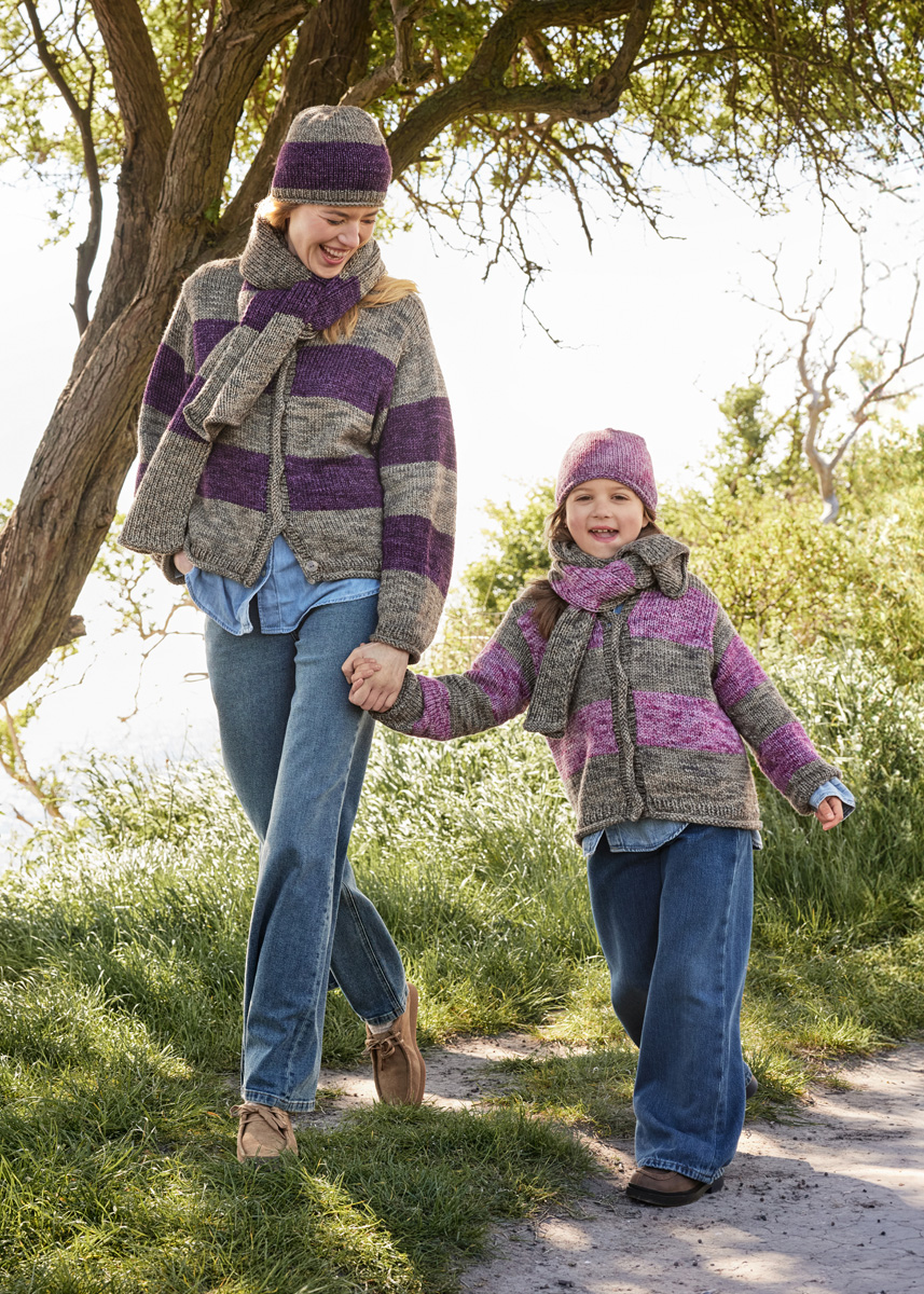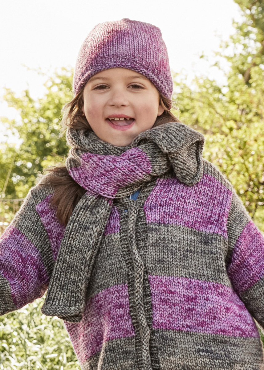Lana Grossa Vintage Chunky (100 % ren ny ull (merino extrafine), LL = ca 80 m/50 g), 100 g gråbeige/mauve (frg 7) og 150 g beige/khaki (frg 1) Pinner: Nr. 6
