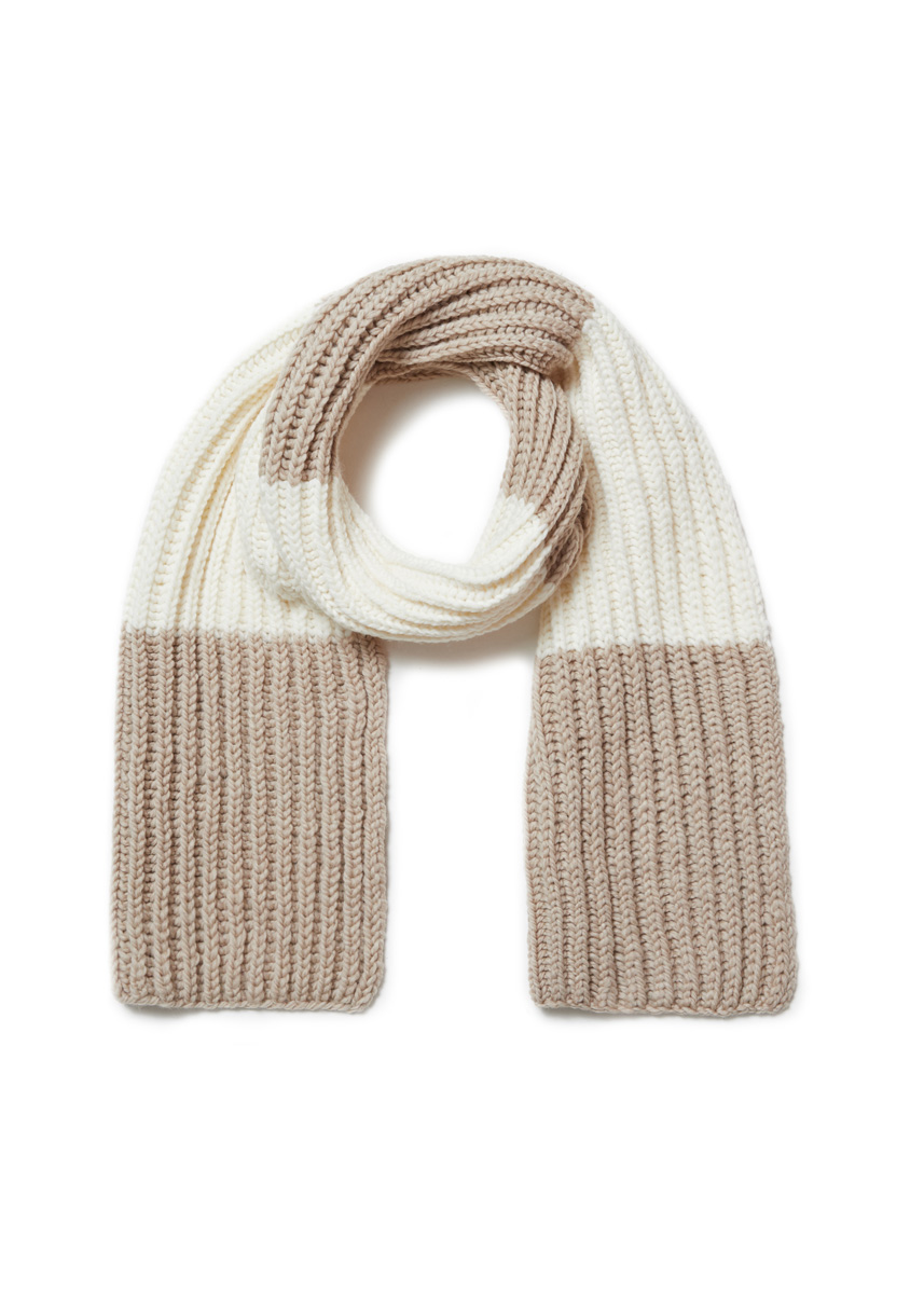 Lana Grossa „Brigitte No. 5 nature“ (100% ren ny ull (merino), löplängd = 75 m/50 g): 150 g i vit (färg 1) och 200 g i beige (färg 9); stickor nr. 8.