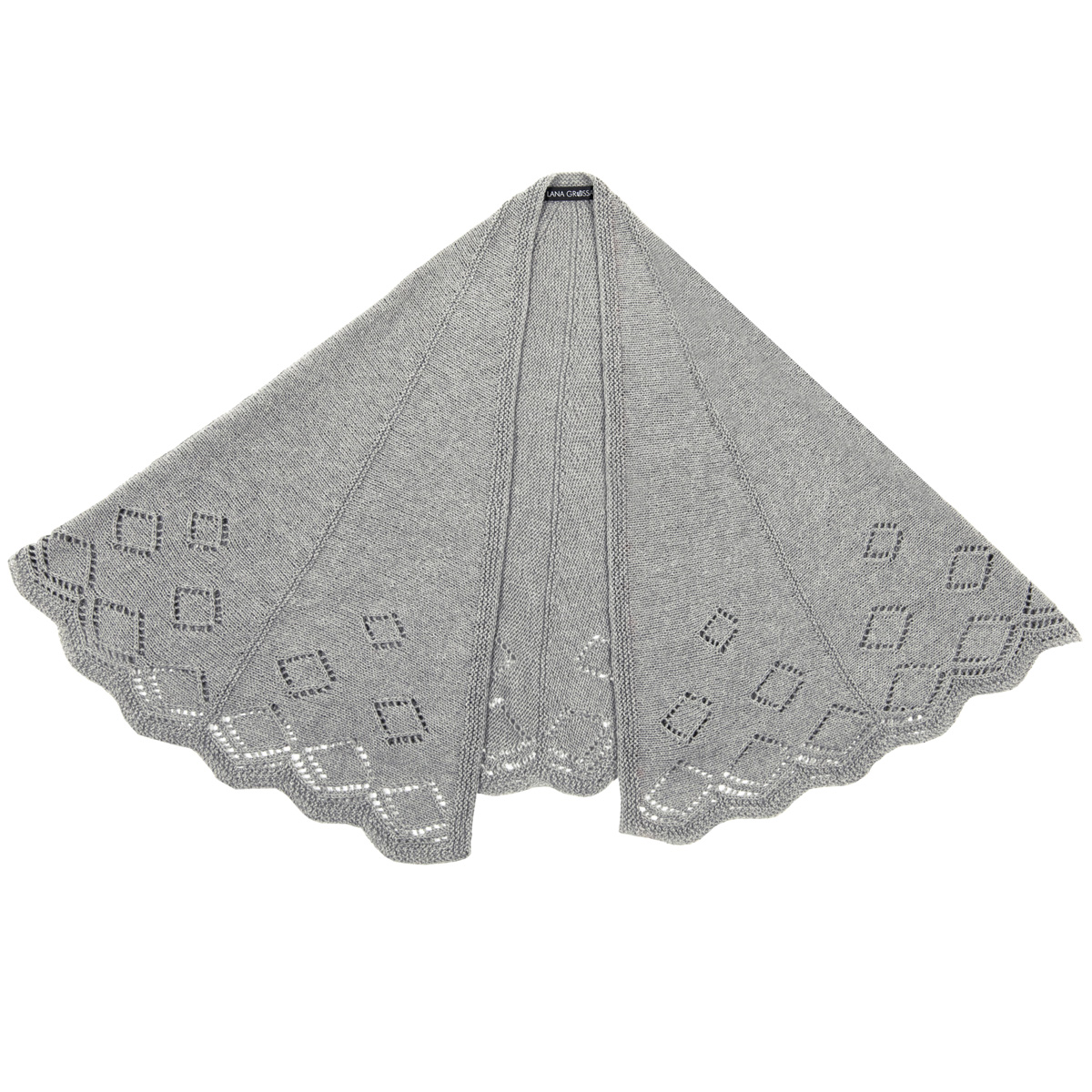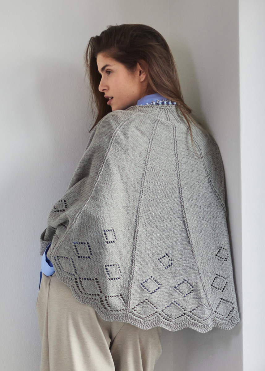 Lana Grossa Cashmere Love (50% kashmir, 50% bomull, löplängd 112 m/25 g), 225 g ljus blå (färg 11); 1 rundsticka nr. 3,5, 80 cm lång, 1 extra vajer, virknål nr. 3,5 maskmarkörer.