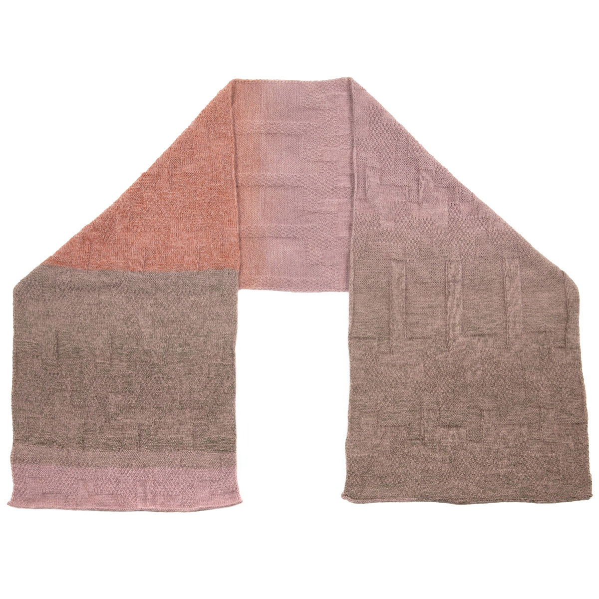 Lana Grossa Cool Wool Lace hand-dyed (100% ren ny ull (merino extrafin), löplängd 800 m/100 g), 200 g gröngrå/khaki/antikviolett/rost (färg 818) och Lana Grossa Silkhair (70% mohair (superkid), 30% silke, löplängd 210 m/25 g), 150 g rosenträ (färg 74). Stickor nr. 3,5. OBS: Modellen stickas med dubbla trådar, 1 tråd Cool Wool Lace eller Cool Wool Lace hand-dyed och 1 tråd Silkhair!