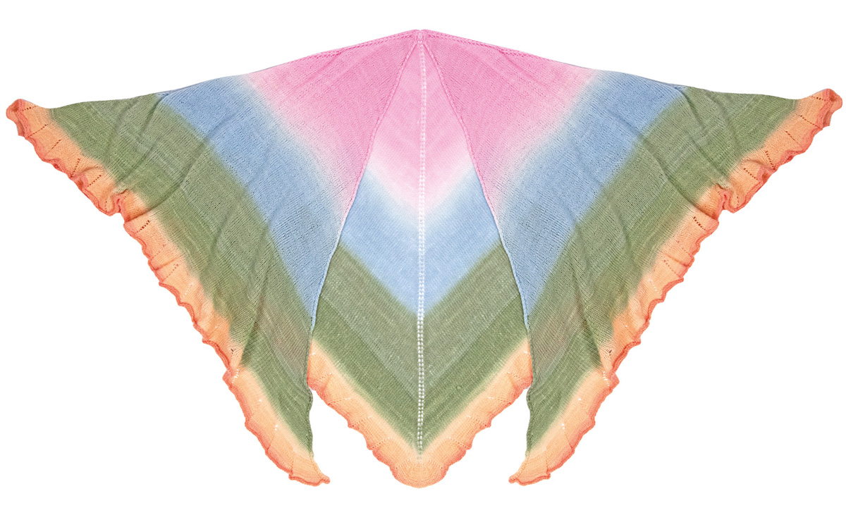 Lana Grossa Cool Wool Lace hand-dyed (100% ren ny ull (merino extrafin), löplängd 800 m/100 g), 100 g Kajol (färg 805) och 100 g Diya (färg 802); 1 rundsticka nr. 3, 120 cm lång och 5 maskmarkörer.