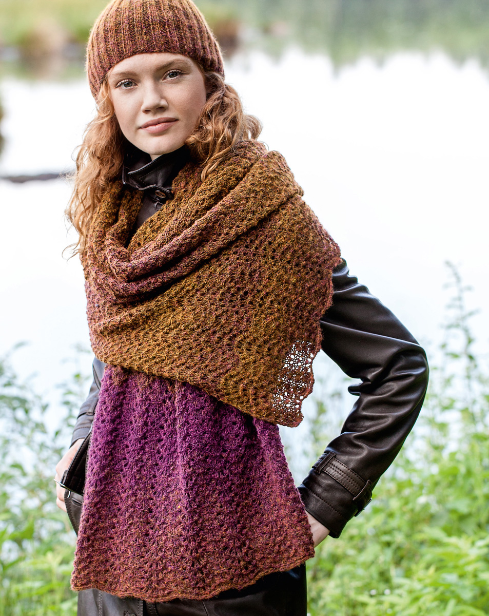Lana Grossa ”Gomitolo Puno” (70 % bomuld, 19 % ren ny merino, 11 % baby alpaka, løbelængde 570 m / 150 gr), 300 gr bær/okkerbrun (fv 14), strikkepinde nr. 4½
