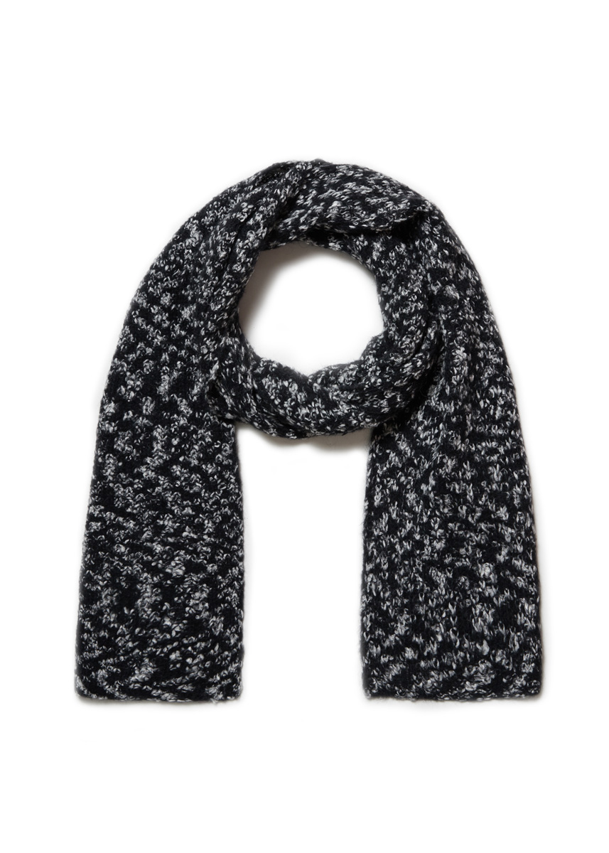 Lana Grossa „Lala Berlin Buffy“ (47% (baby) alpacka, 30% bomull, 23% polyamid, löplängd = 225 m/50 g): 200 g i svart/råvit (färg 12); stickor nr. 4.