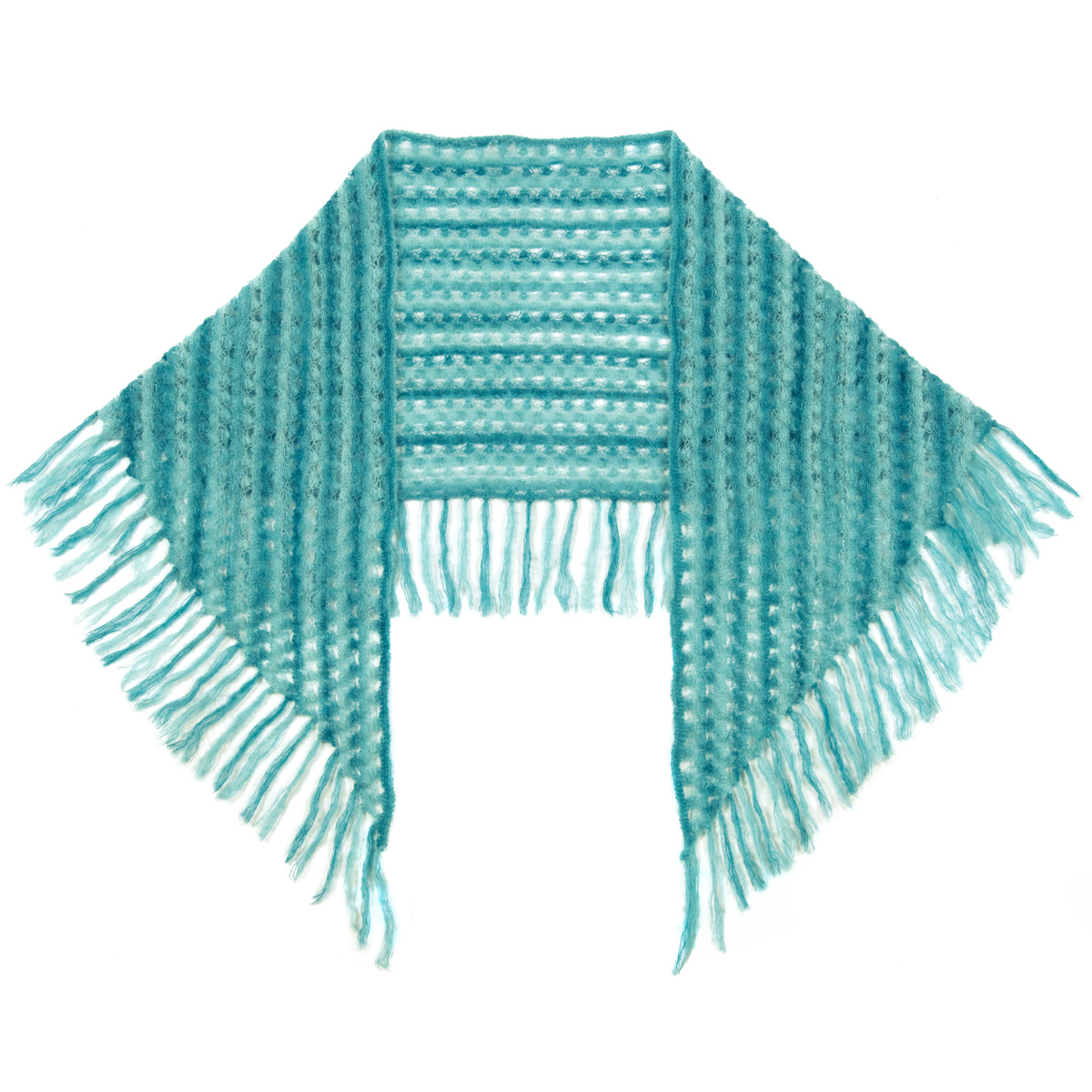 Lana Grossa Setasuri Dégradé (69% alpacka (Suri), 31% silke, löplängd 424 m/50 g), 150 g pastellturkos/mint/petrol (färg 106); stickor nr. 3,5 och 1 virknål nr. 3,5.