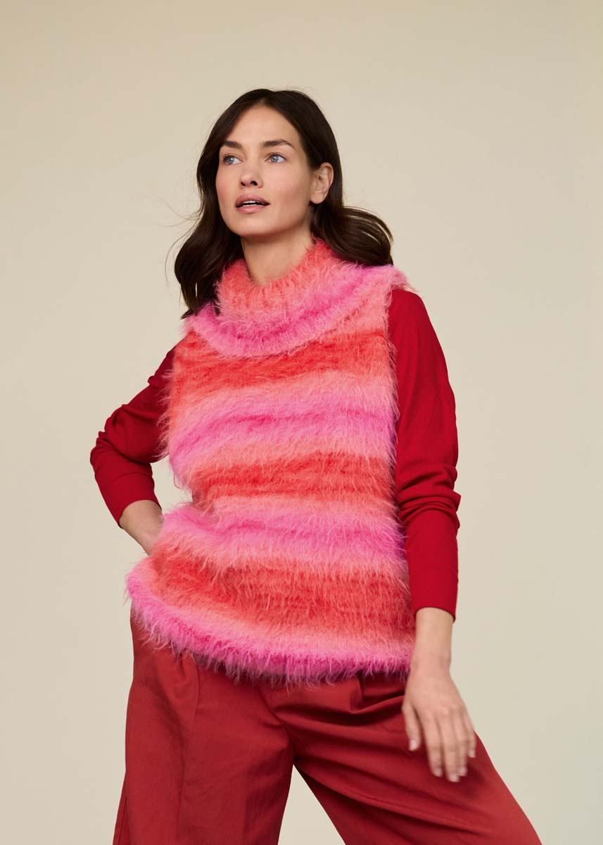 Lana Grossa «Basta Mista» (50% ren ny ull (merino), 50% polyamid, LL = ca. 100 m/50 g): 300 (400 - 400 - 500) g rosa/pink/laks/korall/rød (frg 106) Pinner: Nr 5 og 6, kort rundpinne nr. 5