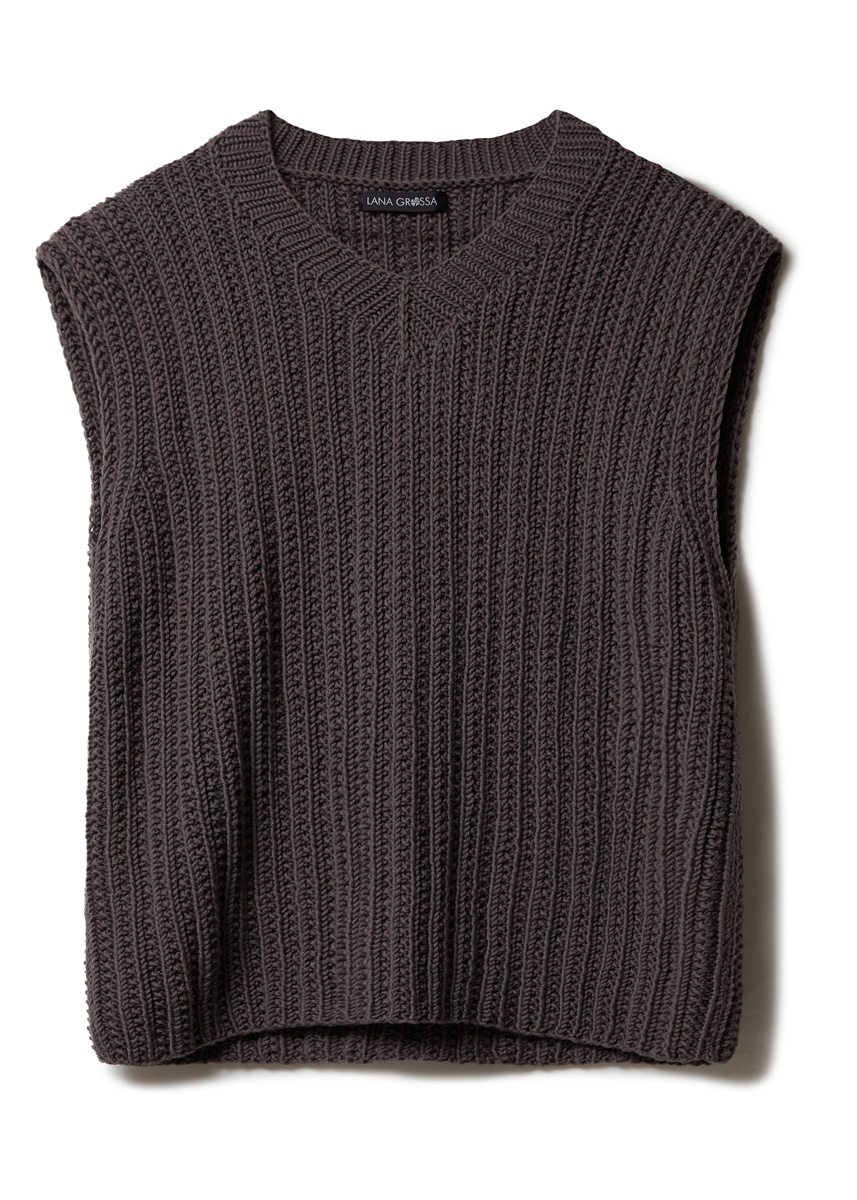Lana Grossa Bingo (100% ren ny ull (merino), löplängd 80 m/50 g), 600 (650 – 700) g skiffergrå (färg 129); stickor nr. 5, samt 1 rundsticka nr. 4, 40 cm lång