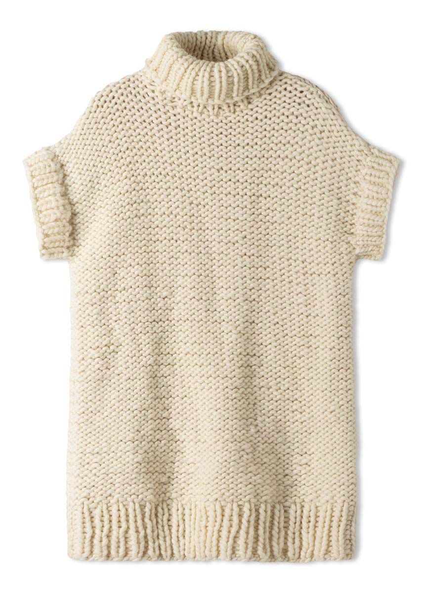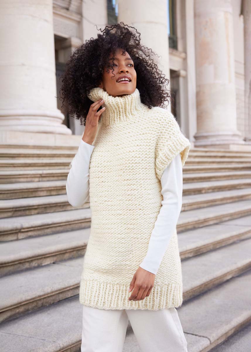 Lana Grossa Confetti (100% ny ull (merino), løpelengde = ca. 50 m/100 g), 1000 (1100 - 1200) g i råhvit (farge 109); strikkepinne nr. 12 og nr. 15; 5 settpinner nr. 12.