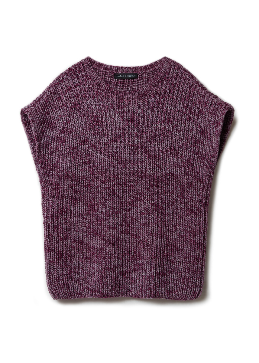 Lana Grossa Vintage Chunky (100% ren ny ull (merino), löplängd 80 m/50 g), 600 (650 – 700) g gråbeige/mauve (färg 7); stickor nr. 5 och 1 rundsticka nr. 4,5, 40 cm lång.