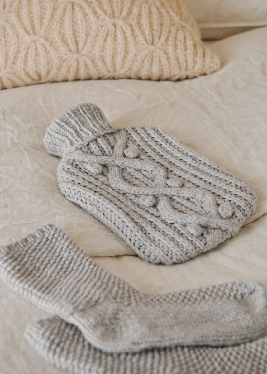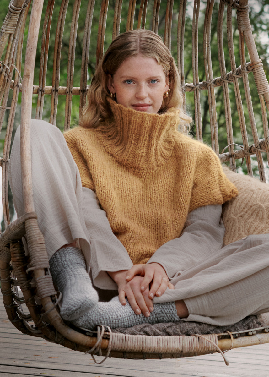 Lana Grossa-kvalitet „Alta Moda Cashmere 16“ (78 % ren ny ull (merino), 12 % kashmir, 10 % polyamid, löplängd = ca 110 m/50 g): ca 100 g ljus grå melerad (färg 1); 1 strumpst nr. 6,5.