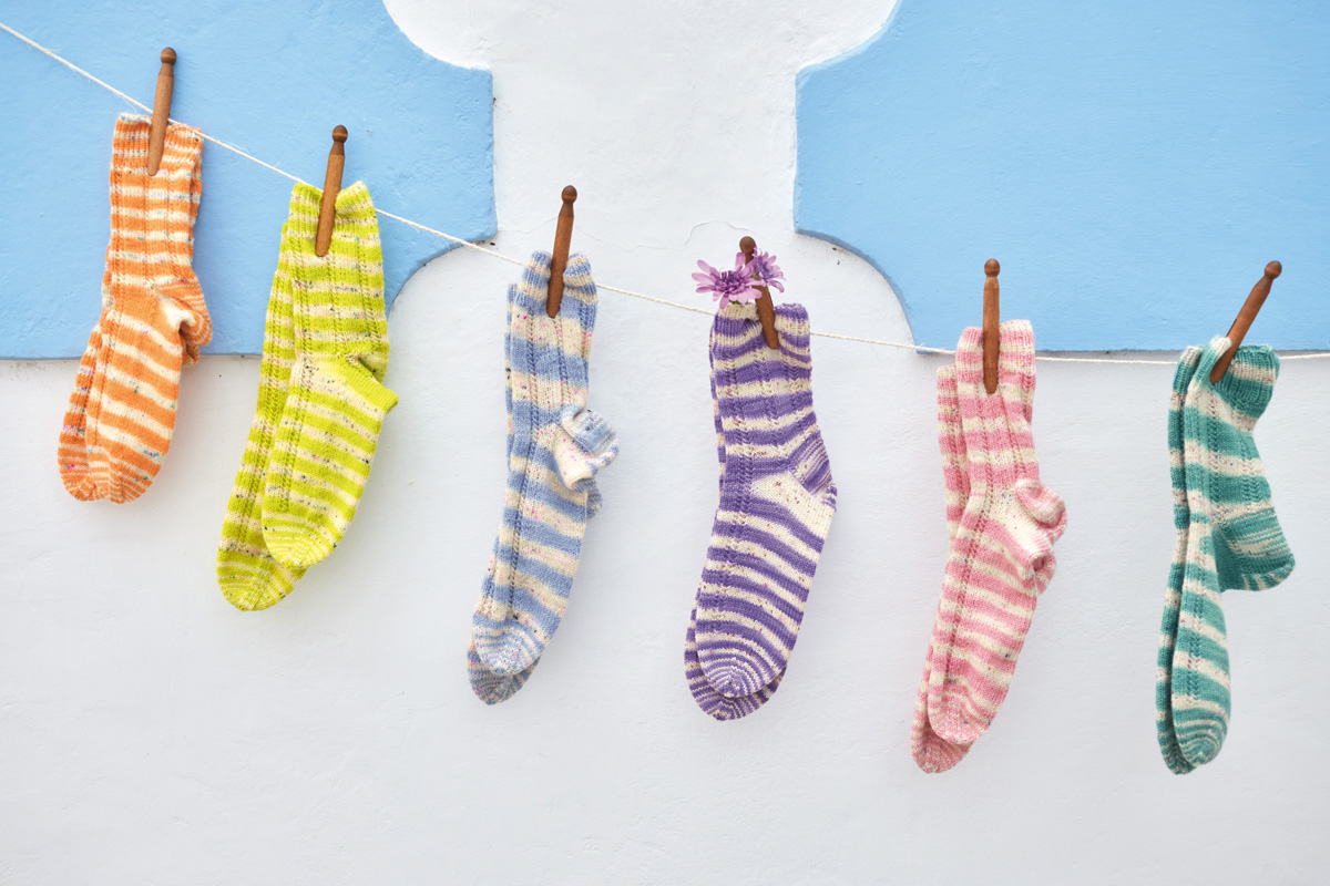 Lana Grossa meilenweit 100g merino hand-dyed (80% ren ny ull (merino), 20% polyamid, löplängd 420 m/100 g) 100 g Hardik (färg 9) eller 100 g Sachin (färg 7) eller 100 g Rahul (färg 8) eller 100 g Chetan (färg 12) eller 100 g Jasprit (färg 10) eller 100 g Virat (färg 11); strumpstickor nr. 2,5.