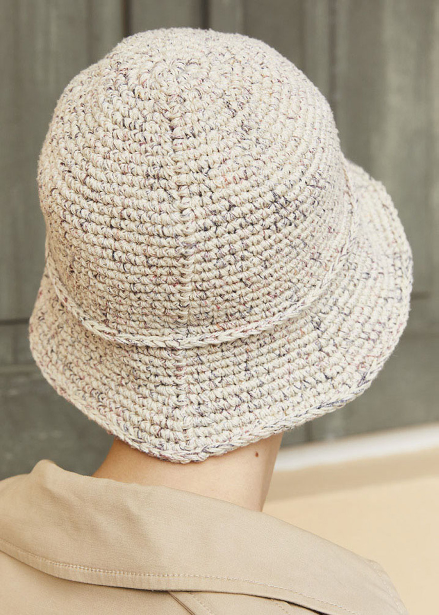 Tips: Solhatten virkas med 3-dubbla trådar (2 trådar i natur och 1 tråd i gråröd melerad).