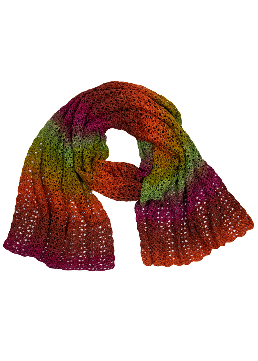 Lana Grossa Gomitolo Aloha (50% bomull, 50% viskos, löplängd 250 m/100 g), 500 g grågrön/fuchsia/laxorange/lerröd/olivgrön (färg 312); 1 virknål nr. 4,5.