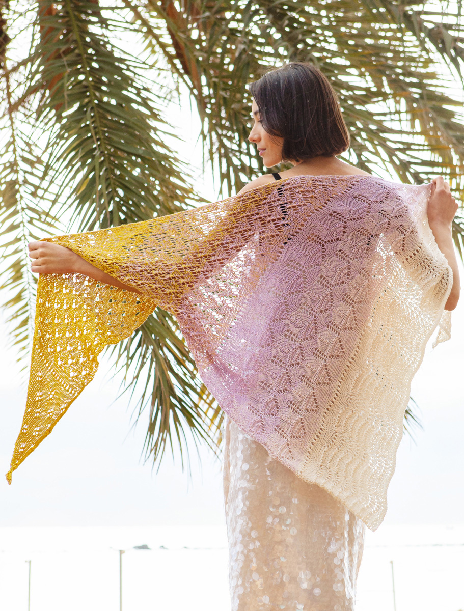 Lana Grossa Shades of Cotton, (100% bomull, löplängd ca 800 m/200 g), 200 g i råvit/mjuk beige/lila/senapsgul (färg 111), stickor nr. 3,0