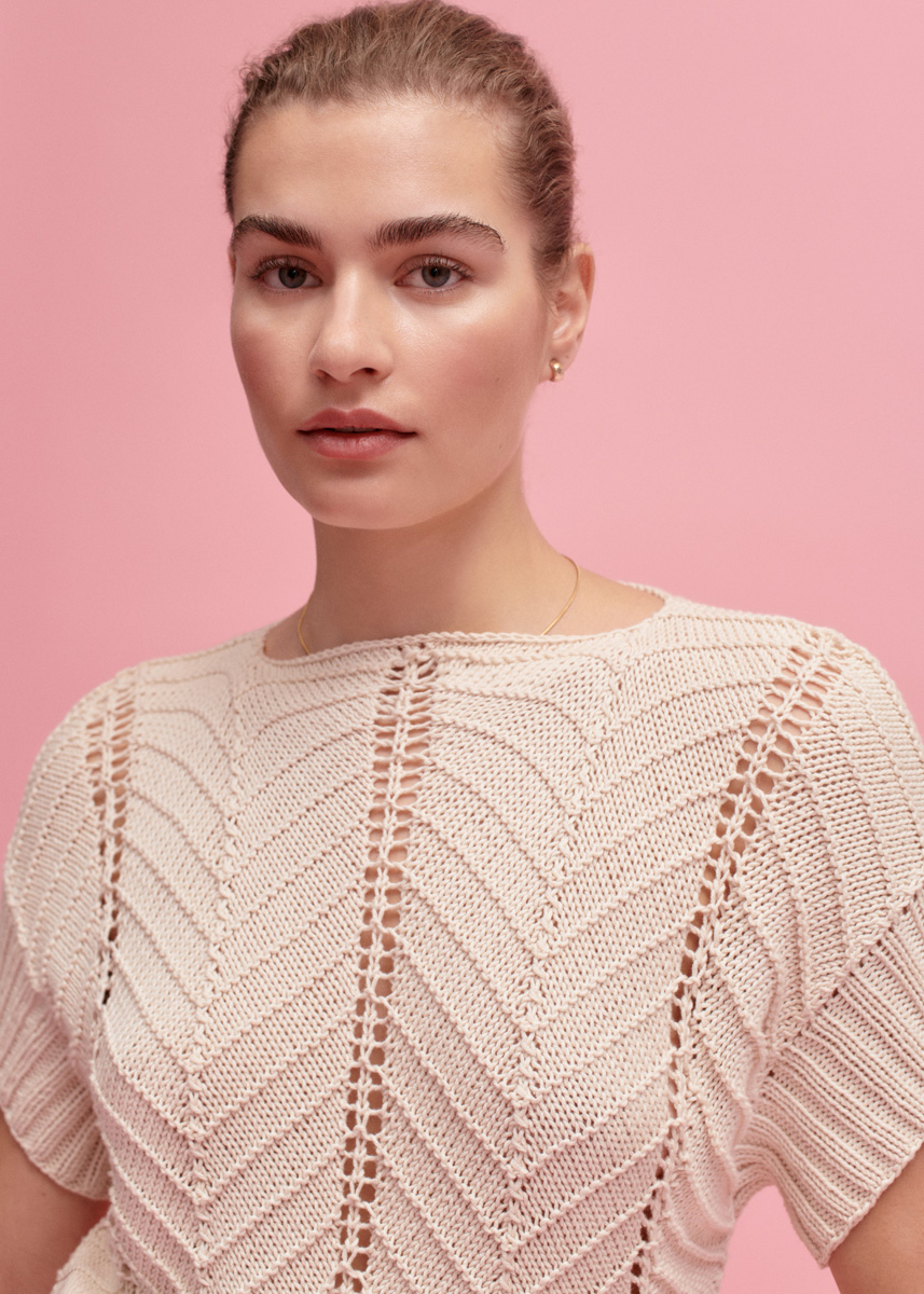 Lana Grossa Landlust bomull (100% bomull (Bio), löplängd 115 m/50 g), 350 (400 – 400) g natur (färg 3); stickor nr. 4,5 och 1 rundsticka nr. 4, 40 cm lång.