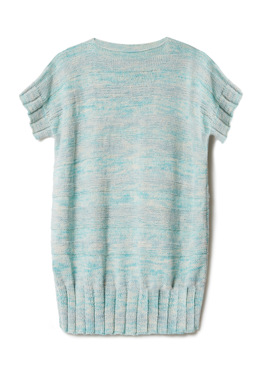Lana Grossa Landlust Sommersilke (50% Silke, 50% bomull, löplängd 170 m/50 g), 350 (400 – 450 – 500) g turkos/blå (färg 121); stickor nr. 2,5 och 3,5.