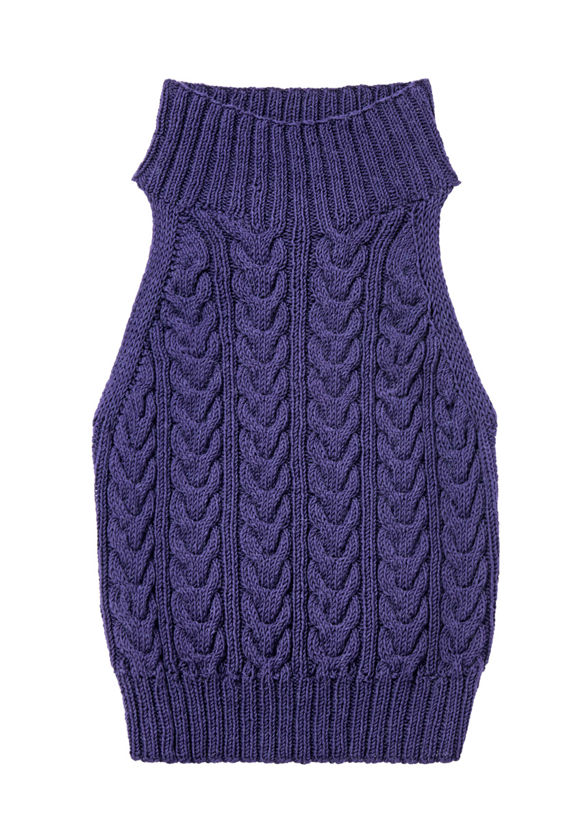 Lana Grossa-kvalitet „Brigitte No. 4“ (80 % bomull, 20 % alpacka, löplängd 110 m/50 g): 300 (350/350/400) g i nattblå (färg nr. 15). Stickor 4 och 4,5 (löst stickat) eller 4,5 och 5 (stramt stickat) – kontrollera stickfastheten. 1 kort rundsticka 4 (löst stickat) eller 4,5 (stramt stickat). 1 flätsticka.