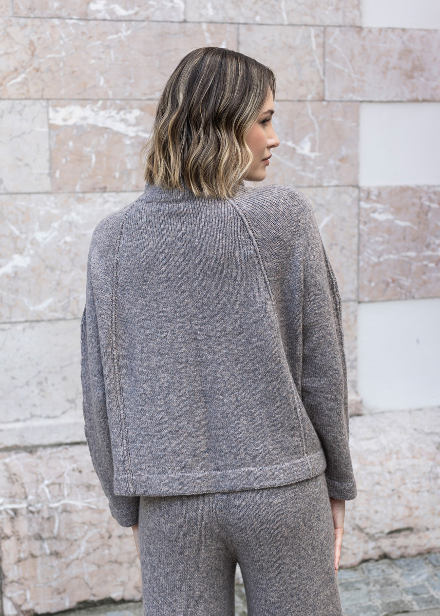 Pullovern stickas sömlöst i ett stycke uppifrån och ned. Den har en total längd på 58 (60 - 62 - 64 - 66 - 68) cm och en bröstövervidd på 40 cm vid 80 cm bröstomkrets (37 cm vid 88 cm bröstomkrets - 32,5 cm vid 96 cm bröstomkrets - 26,5 cm vid 104 cm bröstomkrets - 19,5 cm vid 116 cm bröstomkrets - 13 cm vid 128 cm bröstomkrets).