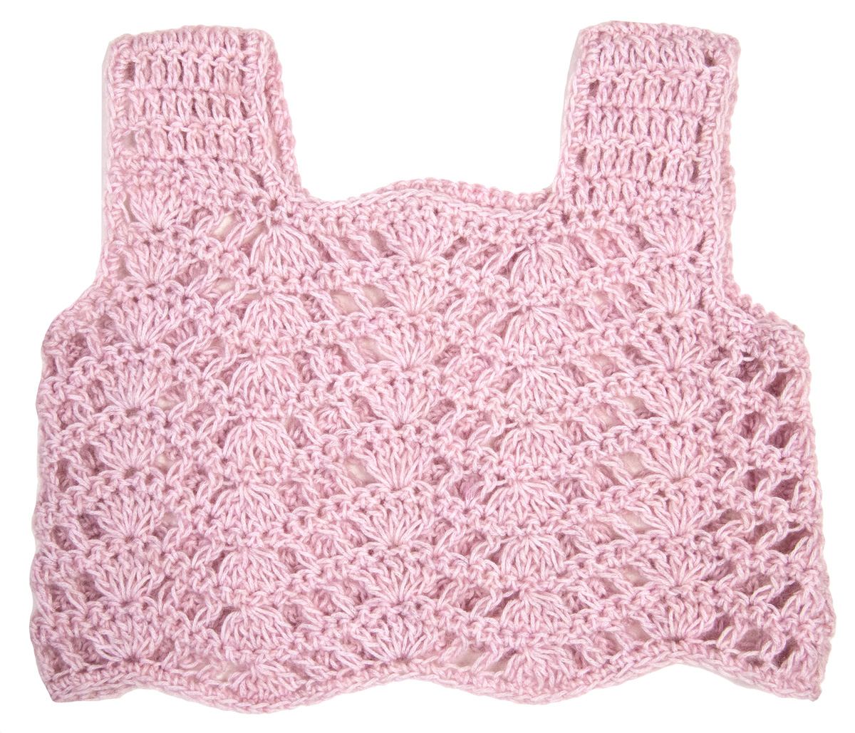 Lana Grossa-kvalitet ”Ecopuno” (72 % bomuld, 17 % ren ny merino, 11 % baby alpaka, løbelængde = ca. 215 m / 50 gr.): ca. 50(100) gr syren (fv 8), hæklenål nr. 4½.