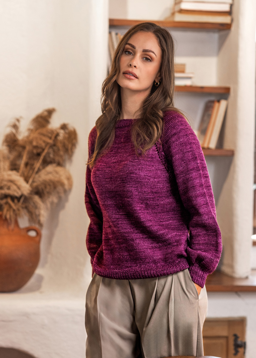 Pullovern stickas i ett stycke uppifrån och ned och har en totallängd av 55 (57 - 59 - 61 - 63 - 65) cm och en bröstövervidd av 10 cm vid 80 cm bröstomkrets (10 cm vid 88 cm bröstomkrets - 10 cm vid 96 cm bröstomkrets - 10 cm vid 104 cm bröstomkrets - 10 cm vid 116 cm bröstomkrets - 10 cm vid 128 cm bröstomkrets).