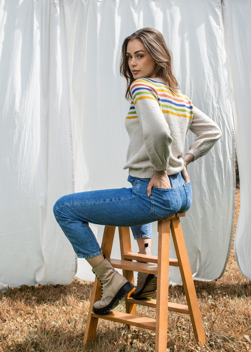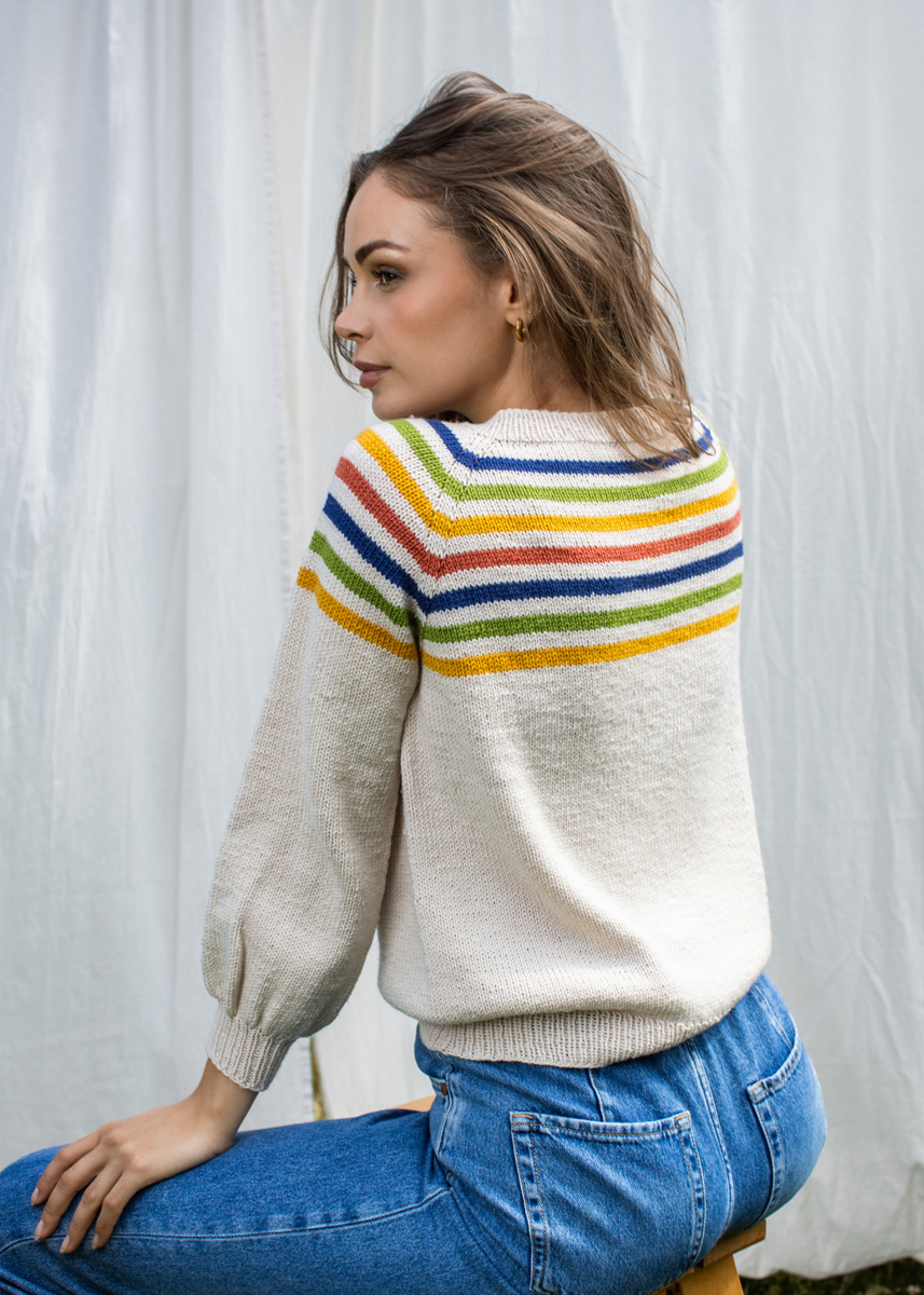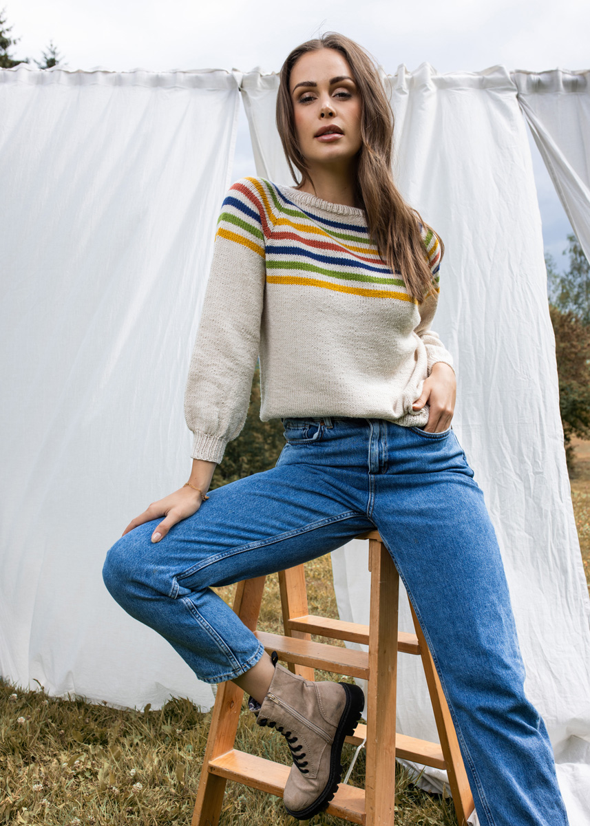 Pullovern stickas i ett stycke uppifrån och ned och har en totallängd av 54 (56 - 58 - 60 - 62 - 64) cm och en bröstövervidd av 10 cm vid 80 (88 - 96 - 104 - 116 - 128) cm bröstomkrets.