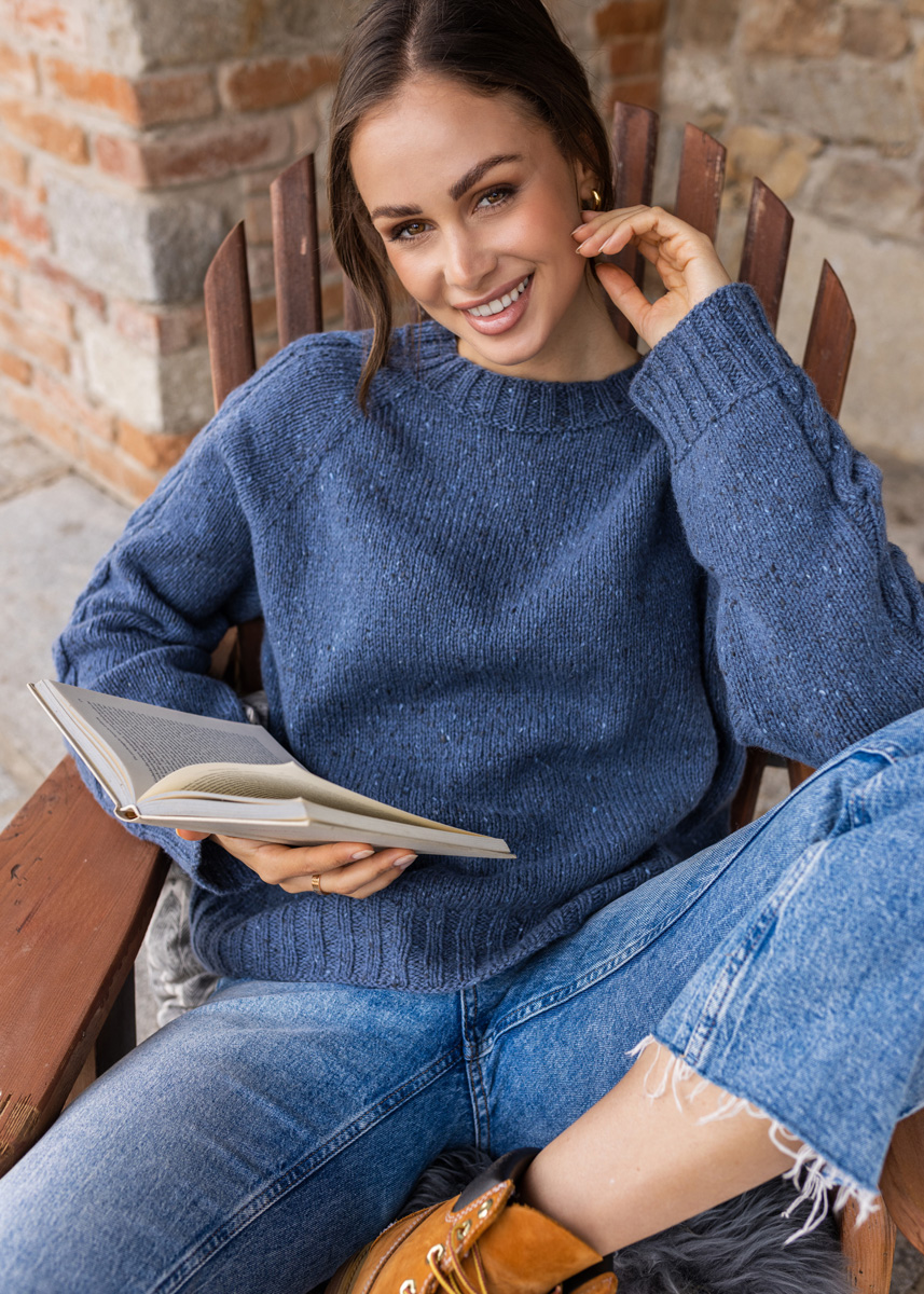 • 300 (350 - 350 - 350 - 400 - 400) g jeans melerad (färg 121) eller mörkpetrol melerad (färg 116)