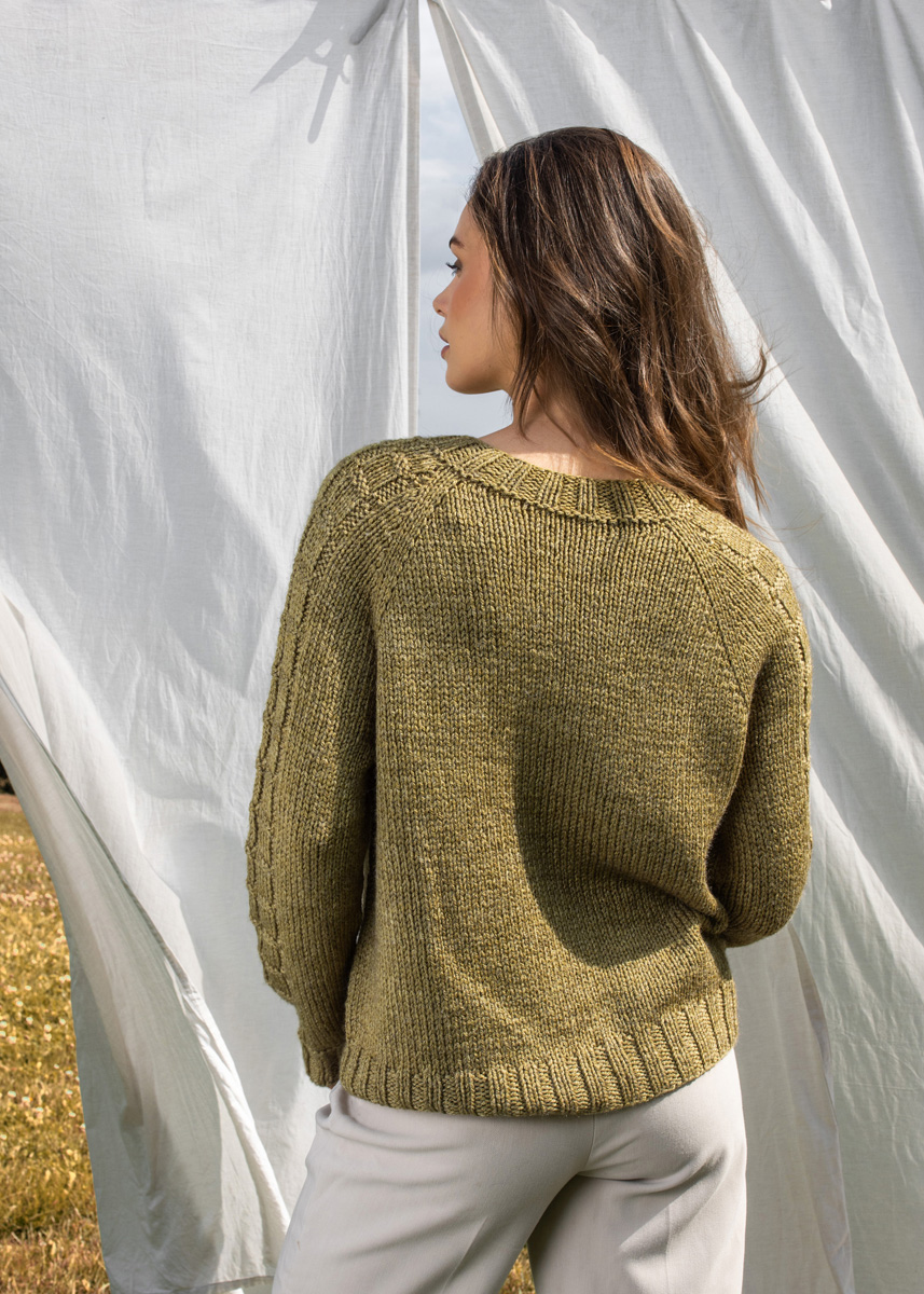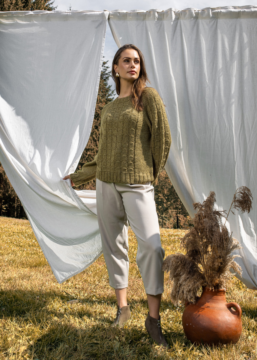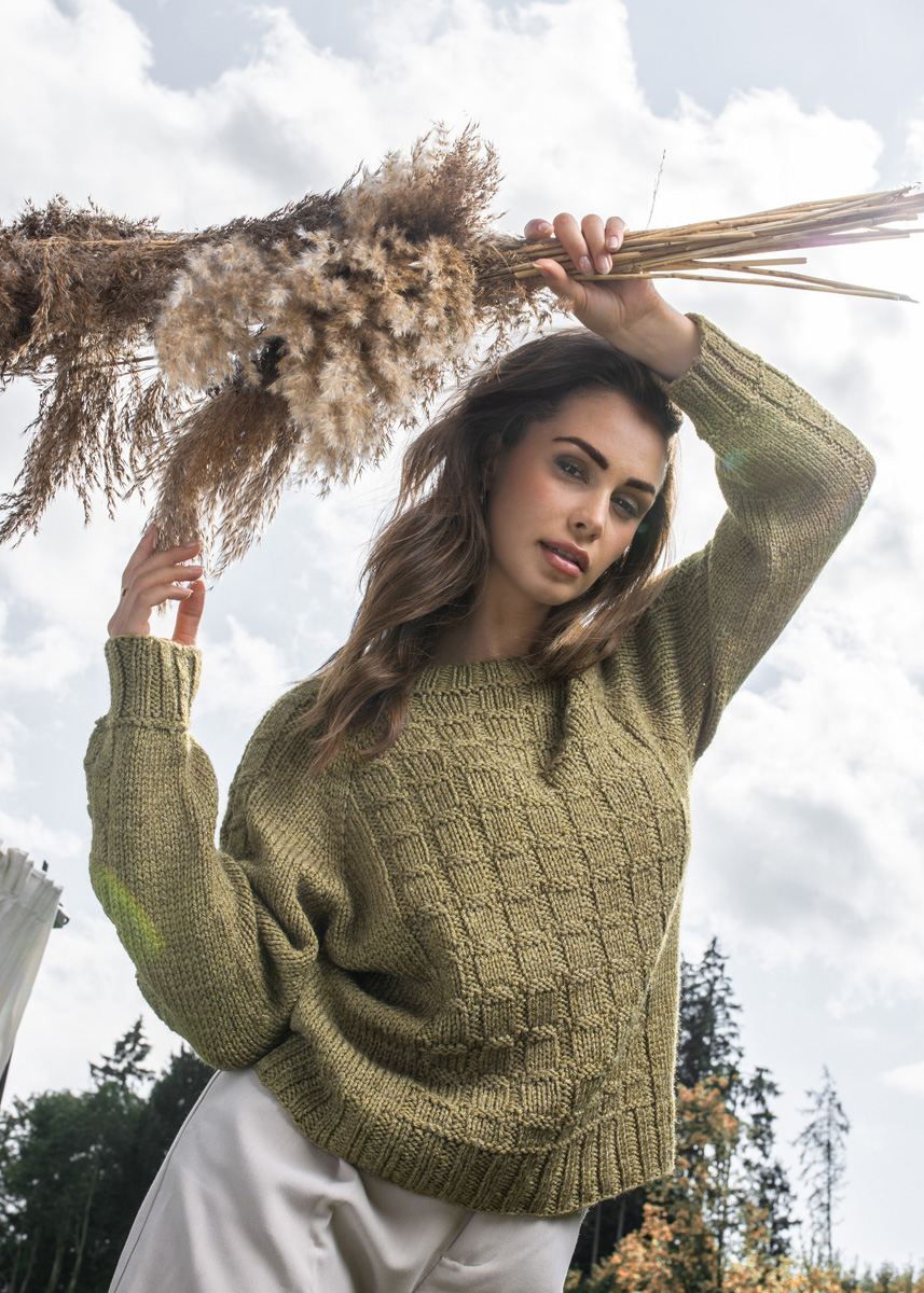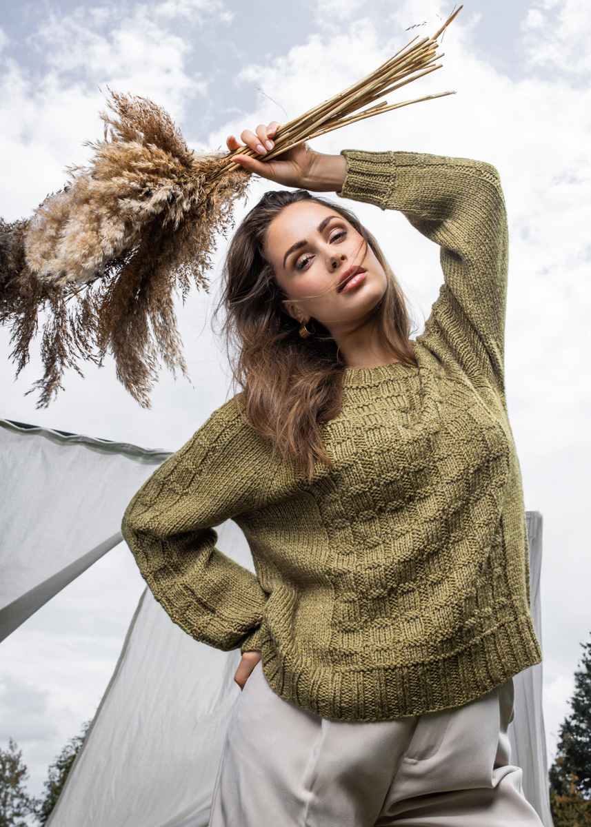 Pullovern stickas i ett stycke uppifrån och ned och har en totallängd av 52 (54 - 56 - 58 - 60 - 63) cm och en bröstövervidd av 12 cm vid 80 cm bröstomkrets (12 cm vid 88 cm bröstomkrets - 12 cm vid 96 cm bröstomkrets - 12 cm vid 104 cm bröstomkrets - 10 cm vid 116 cm bröstomkrets - 8 cm vid 128 cm bröstomkrets)