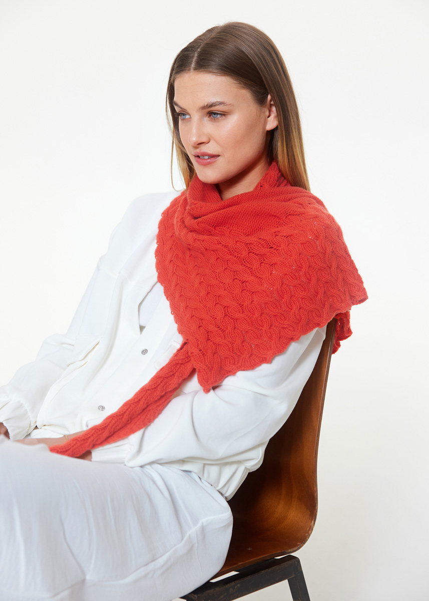 Lana Grossa Cashmere Pure (100% kashmir, löplängd 115 m/25 g), 150 g hummer (färg 17); 1 rundsticka nr. 4, 100 cm lång, 1 hjälpsticka och 1 maskmarkörer.