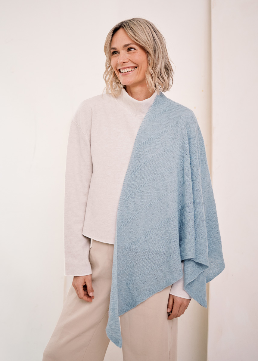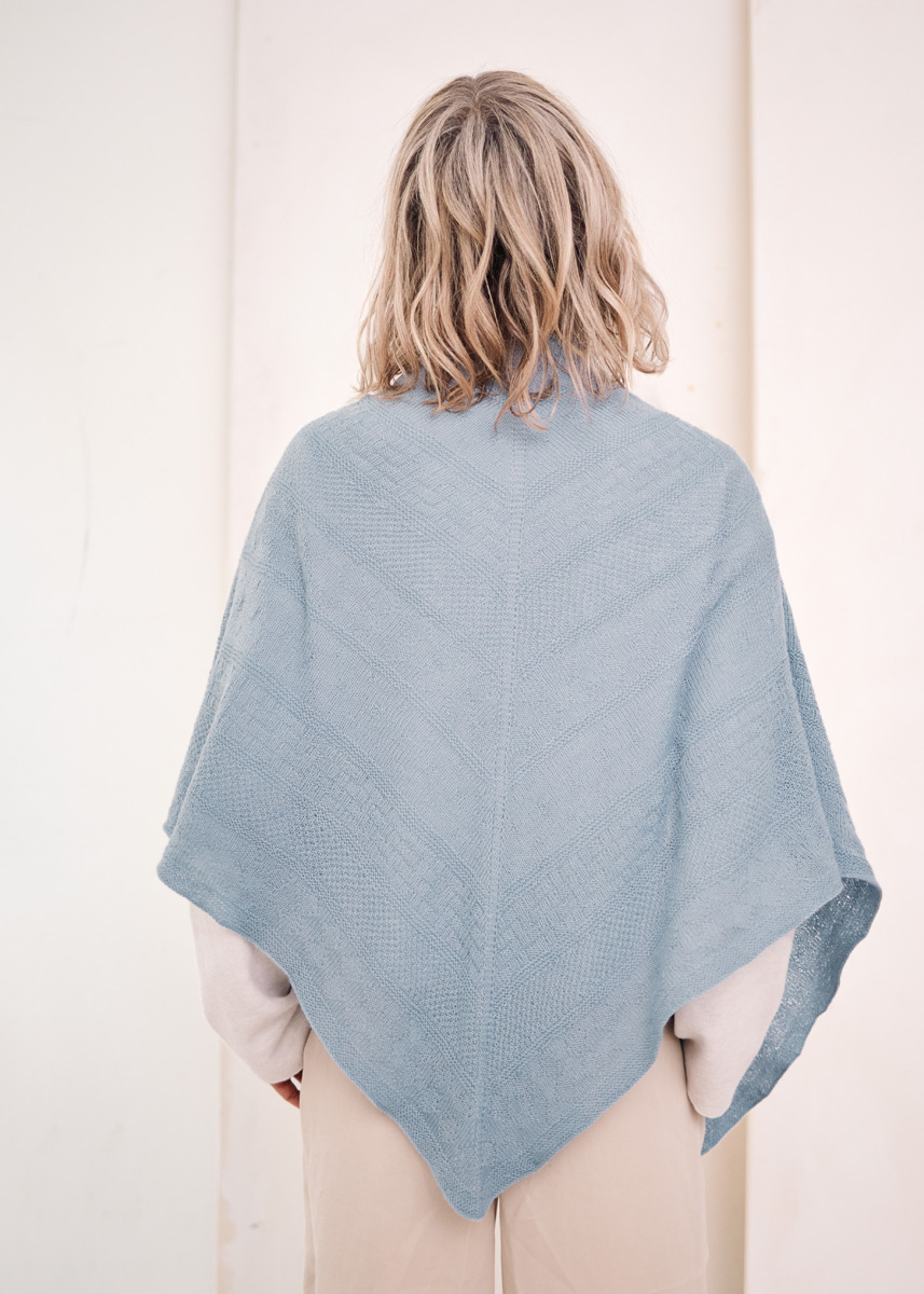 Lana Grossa Cool Wool Lace (100 % ren ny ull (extrafin merino), löplängd 400 m/50 g), 150 g pastellblå (färg 34); 1 rundsticka nr. 3, 1 extra vajer, 80 – 100 cm lång.