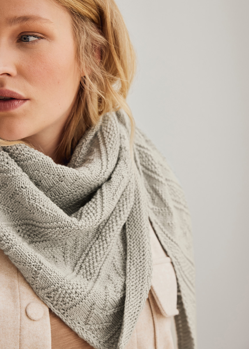 Lana Grossa-kvalitet „Cool Wool Seta“ (80 % ren ny uld (ekstrafin merino), 20 % silke, løbelængde = ca. 160 m / 50 gr.): 250 gr resedagrøn (fv 5), strikkepinde nr. 4.