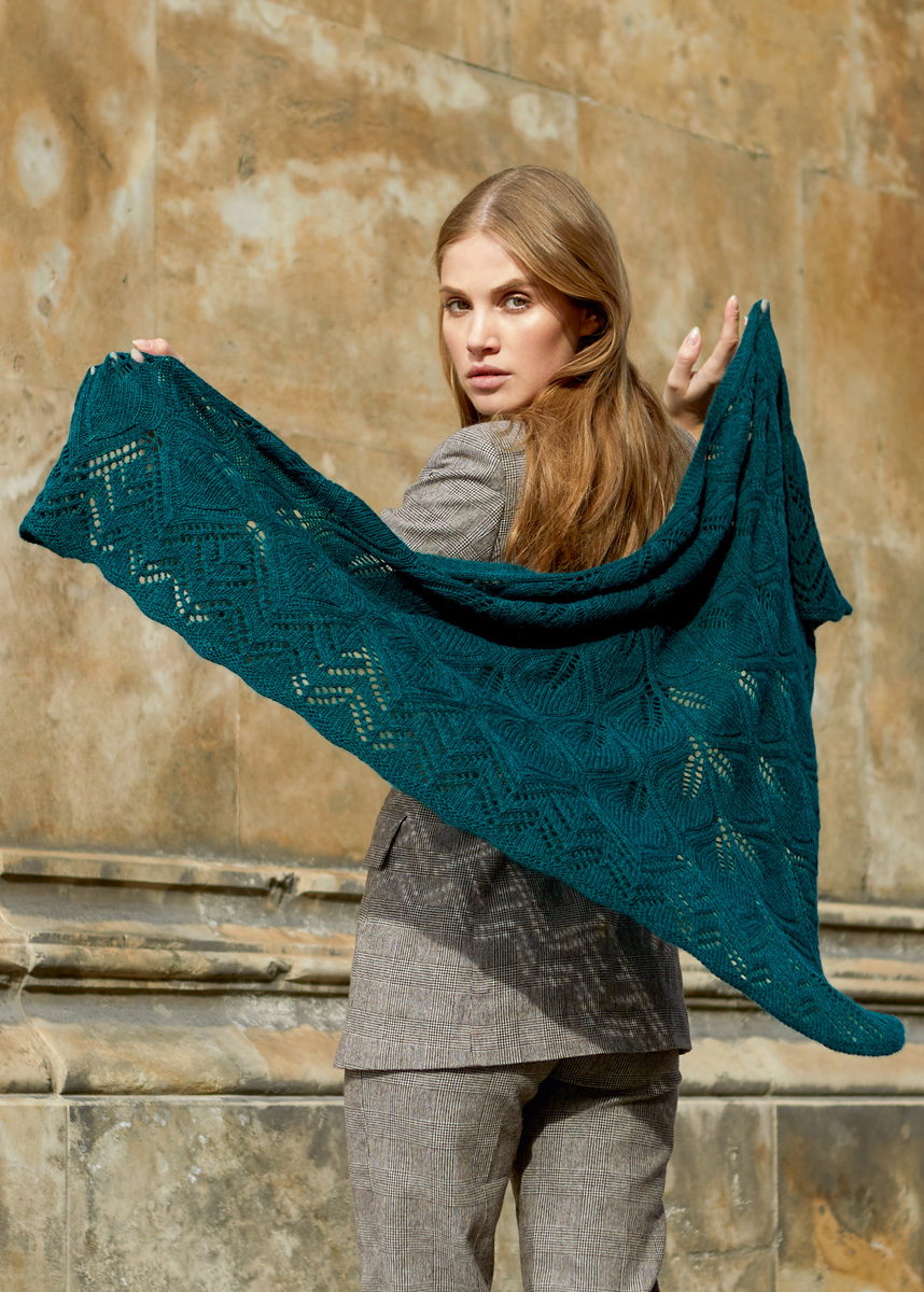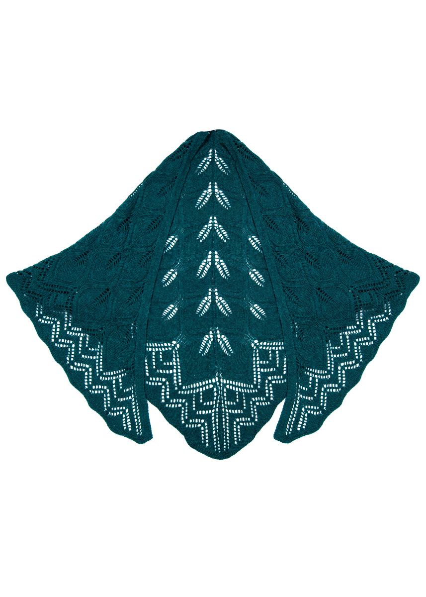 Lana Grossa Ecopuno (72% bomull, 17% ren ny ull merino, 11% baby alpacka, löplängd 215 m/50 g), 250 g mörk petrol (färg 37); 1 rundsticka nr. 4,5, 120 cm lång, 1 rundstickavajer till den provisoriska uppläggningen, 60 cm lång, 1 maskmarkörer.