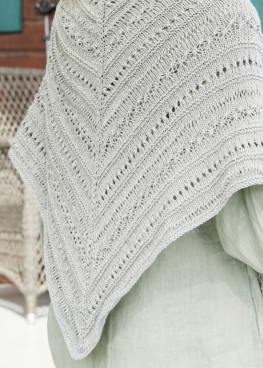 Lana Grossa-kvalitet „Landlust-Sommerseide“ (50% silke,50% bomull, löplängd ca. 170 m/50 g), 250 g i lindgrön (färg 40); 1 rundsticka nr. 4,5, 120 cm lång.