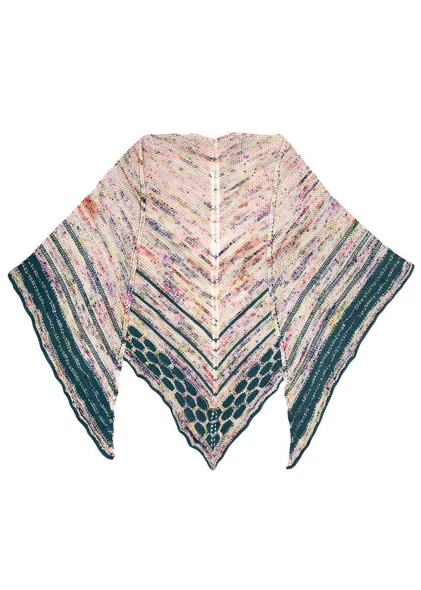 Lana Grossa Meilenweit Merino hand-dyed (80% ren ny ull, 20% polyamid, löplängd 420 m/100 g), 200 g ljus grå/gulgrön/pink/mörk petrol/svartgrön (färg 302) och Lana Grossa Meilenweit 100 (80% ren ny ull, 20% polyamid, löplängd 420 m/100 g), 100 g petrol (färg 1371); stickor nr. 3,5, 1 rundsticka nr. 3,5, 80 cm lång och 2 maskmarkörer.