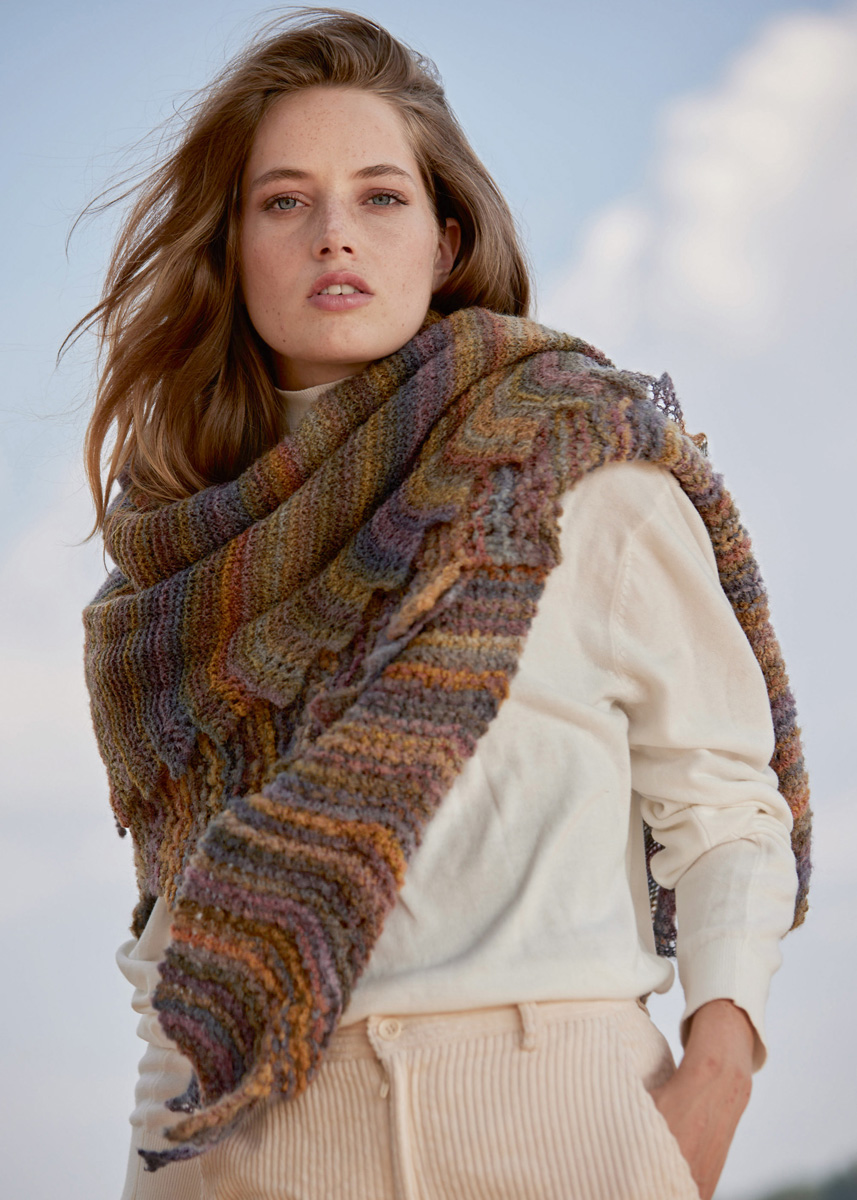 Lana Grossa-kvalitet „Twin 25 g“ (54 % ren ny ull (merino), 20 % (baby) alpacka, 26 % polyamid, löplängd ca. 200 m/25 g): ca. 75 g i önskad färg; stickor nr. 4,5.