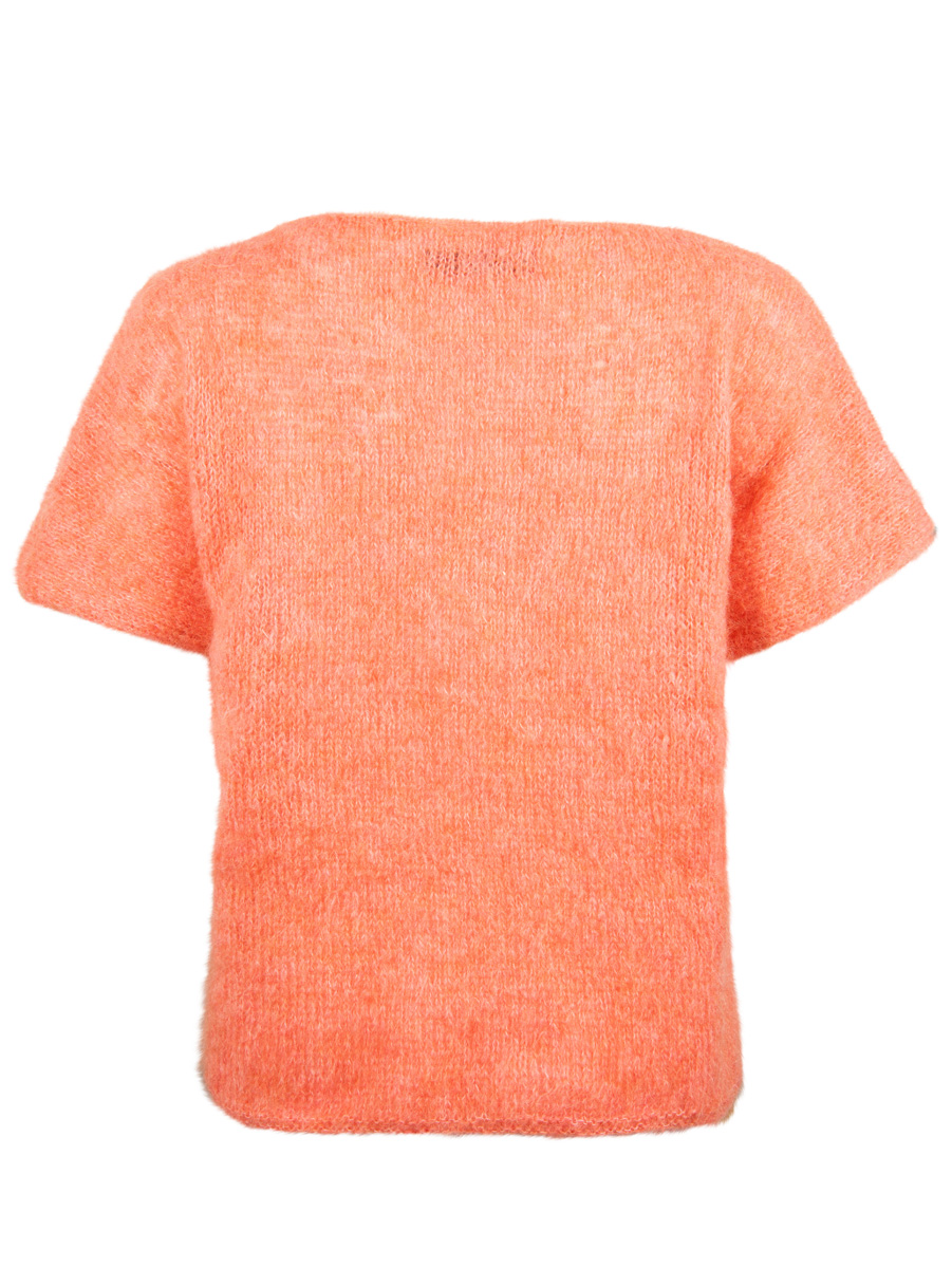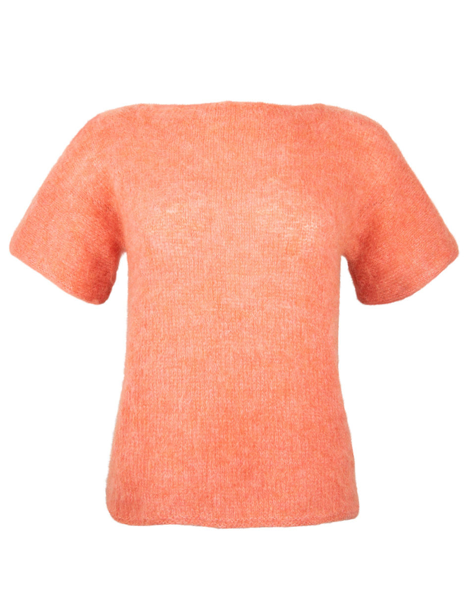 Lana Grossa-kvalitet ”Brigitte No. 3” (40 % mohair, 37 % ren ny uld, 23 % polyamid, løbelængde = ca. 100 m / 25 gr.): ca. 100(125) gr gammelrosa (fv 25), strikkepinde nr. 4½. 2 strømpepinde nr. 4 og hæklenål nr. 4