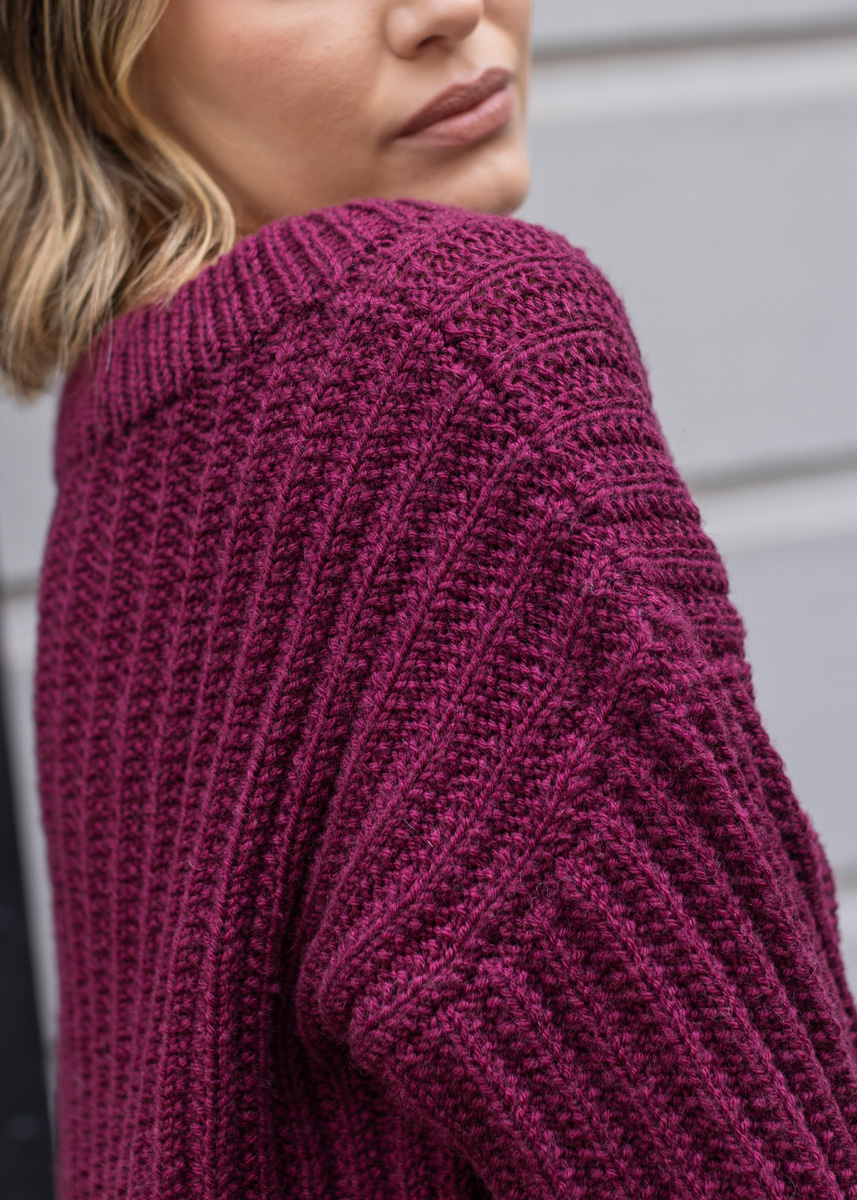 Lana Grossa MERINO UNO 100 % ren ny ull merino Löplängd: ca. 125 m / 50 g • 800 (850 - 850 - 850 - 900 - 900) g bordeaux (färg 59) • Stickor nr. 4,5 • Rundsticka nr. 4,5 / 60 cm