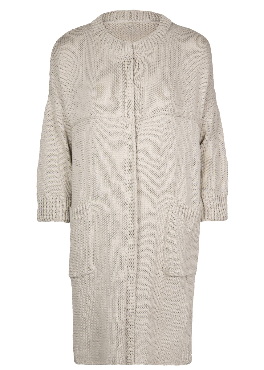 Lana Grossa „Certo“ (100% GOTS-bomull; löplängd 115 m/50 g), 700 (800) g i natur (färg 9); stickor nr. 7 och 5.