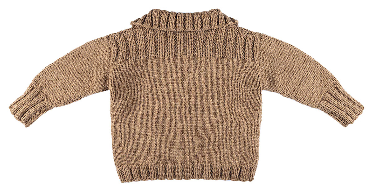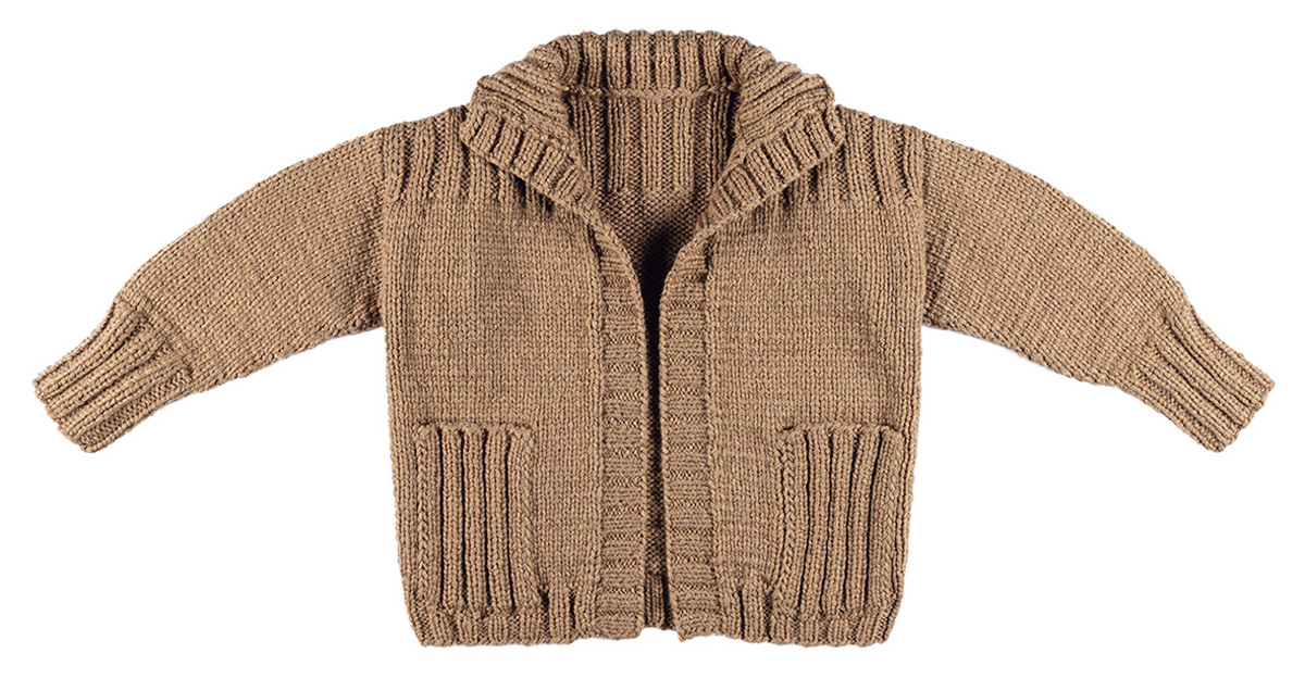 Lana Grossa Cool merino (90% ren ny ull (merino), 10% polyamid, löplängd 150 m/50 g), 600 (600 – 650) g kamel (färg 11); stickor nr. 5, 5 och 6, 1 rundsticka nr. 6, 40 cm lång.