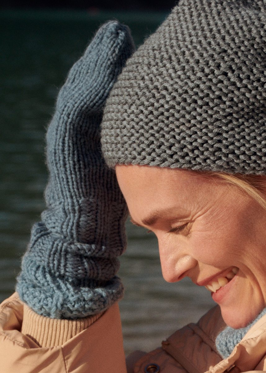 Lana Grossa Alta Moda Cashmere 16 (78% ren ny ull (merino), 12% kashmir, 10% polyamid, löplängd 110 m/50 g), 100 g rökblå (färg 53); strumpstickor nr. 5 och 1 hjälpsticka.