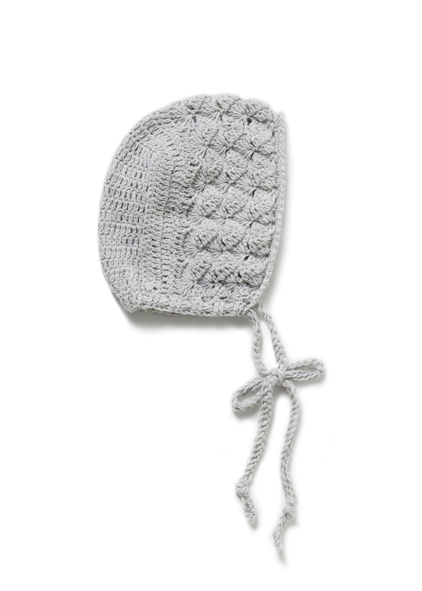 Lana Grossa-kvalitet ”Cool Wool Baby” (100 % ren ny uld (ekstrafin merino), løbelængde = ca. 220 m / 50 gr.): 50(50-100-100) gr lysegrå (fv 206), hæklenål nr. 3 og 4½.