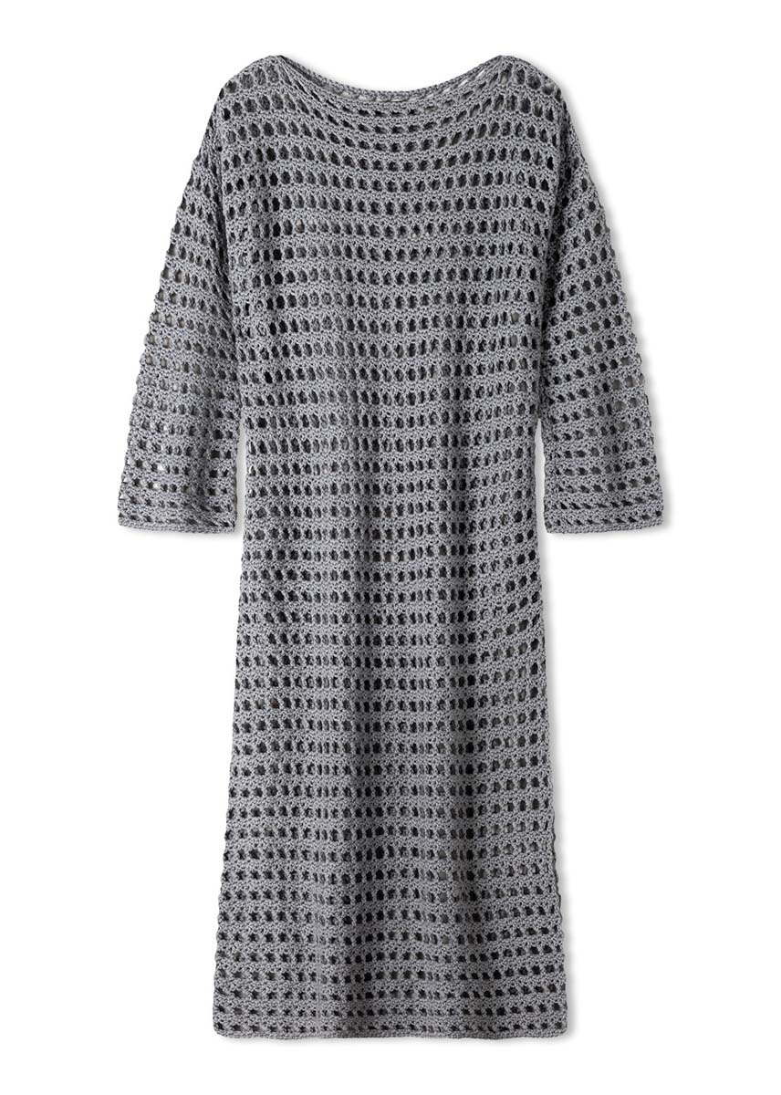 Lana Grossa „Summer Softness“ (80% bomull (bio), 20% ren ny ull (merino superfin), løpelengde 130 m/50 g), 600 g i lys grå (farge 18); heklenål nr. 5.
