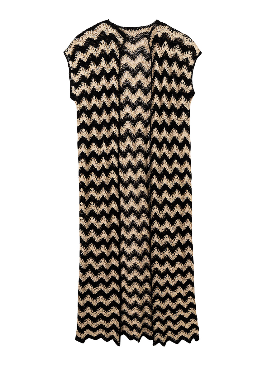Lana Grossa-kvalitet ”Nastrino” (100 % bomuld, løbelængde = ca. 190 m / 50 gr): ca. 300 (350) gr sort (fv 18) og ca. 250 (300) gr lys beige (fv 25), hæklenål nr. 4.