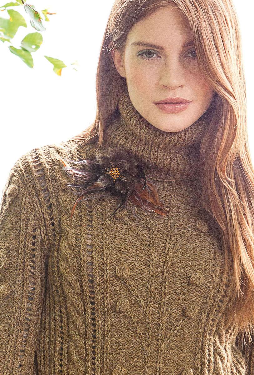 Lana Grossa Alta Moda Alpaca (90 % Alpaka, 5 % Schurwolle, 5 % Polyamid, Lauflänge 140 m/50 g) 450 (500- 550) g Goldbraun meliert (Fb 50); Stricknadeln Nr. 5 und 6, eine 40 cm lange Rundstricknadel Nr. 5,5.