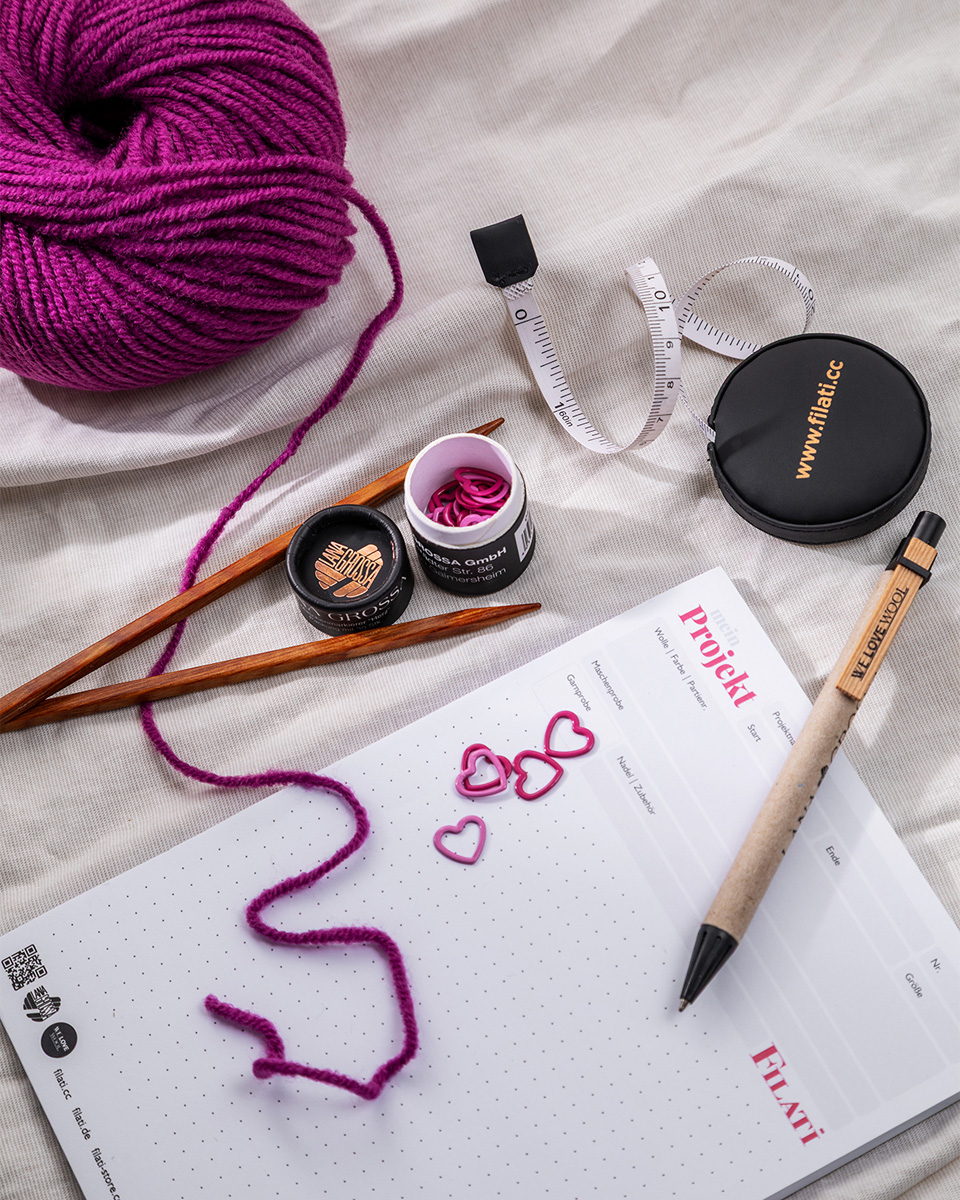 FILATI projektblock är den perfekta följeslagaren för alla som inte bara vill ha sina stick- och virkidéer i huvudet, utan också strukturerat på papper. Speciellt utvecklad för kreativa projekt hjälper de överskådliga sidorna dig att hålla ordning – från första skiss till sista maska.